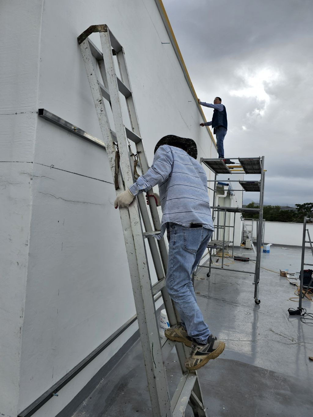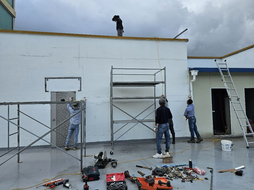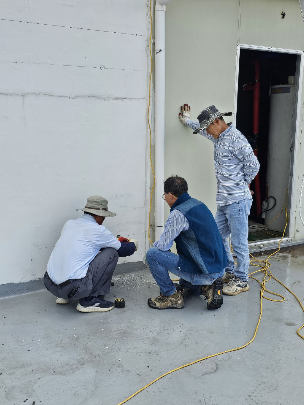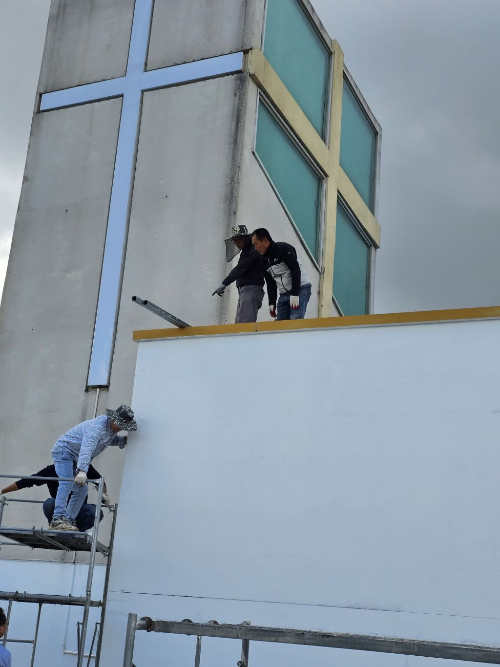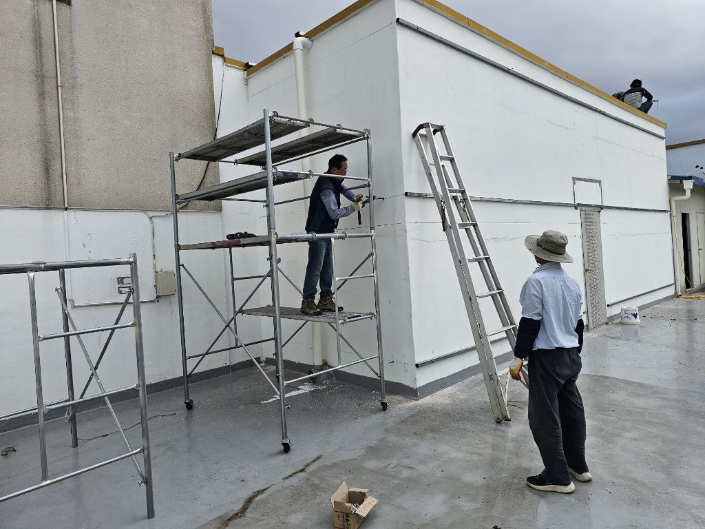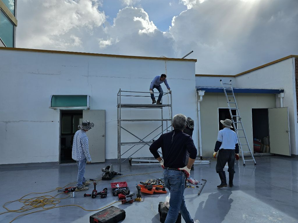 비전관에 누수가 있어서 그동안 공사를 많이 했습니다. 하나님께서 건축에 관련된 분들을 많이 보내주셔서 비전관의 옥탑을 완전히 덥는 공사를 합니다. 누수의 원인이 되었기 때문입니다. 또 본당의 미비한 부분도 이번 기회에 모두 작업하여 마무리 하려 합니다. 이를 위해 오늘 남선교회 회원들이 판넬을 붙일 수 있도록 뼈대 작업을 했습니다. 징크판넬로 완전히 싸고 지붕까지 덮어서 누수를 완전히 잡을 예정입니다. 김중섭 권사님과 저만 빼고 모두 건축 일을 하시던 분들이라 일찍 공사가 마무리가 되었습니다. 모두 수고하셨습니다.