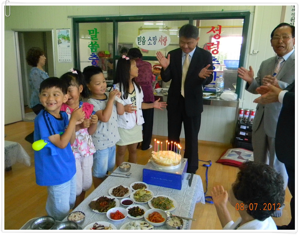 모든 성도들의 축하를 받으며 받은 생일상을 보면서,