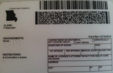 여기 제 운전면허증, 뒷면은 장기기증 동의서가 있는데 전 동의하지 못했네요.