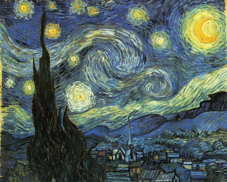 가만히 이 작품을 들여다보면 거기에는 ‘밤’의 운행이 있다. 드문드문 위치한 조그만 마을의 집들에 불이 꺼지면 원래부터 이 세계에 존재했으나 그 존재감을 과시하지 않았던 수많은 존재들이 조용히 그러나 매우 강력하게 자신을 드러낸다. 칠흑 같은 하늘은 풍부하고 강렬한 보라색, 파란색, 초록색을 머금고 달과 별을 끌어안는다. 별들은 자신이 태어날 때부터 가지고 있었던 강력한 에너지를 내뿜으며, 지금 우리의 눈 앞에 우주의 비밀을 폭로한다. 하늘 아래 검은 산도 짙은 그림자를 드리우며, 우주적 운행에 참여한다. 전면에는 반 고흐가 좋아했던 거대한 사이프러스 나무가 반 고흐 자신의 인용인 “오래된 숲의 선들처럼 비틀린 선”처럼 하늘을 향해 불타오르며 ‘깊은 시간’의 존재를 드러낸다. 이에 비하면 아주 왜소해 보이는 마을 교회의 첨탑이, 그나마 하늘과의 교신을 위한 인간의 노력을 보여주려는 듯, 높다랗게 솟아있다. |