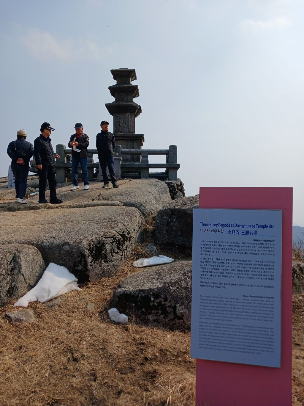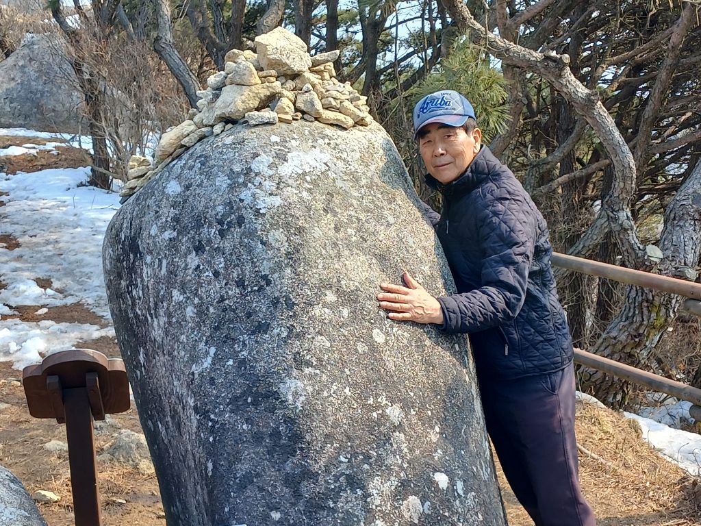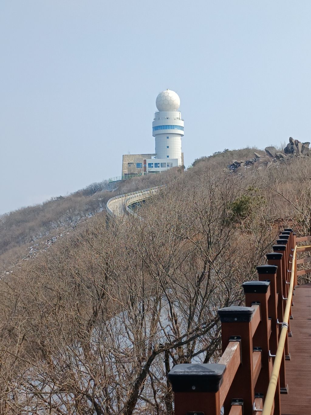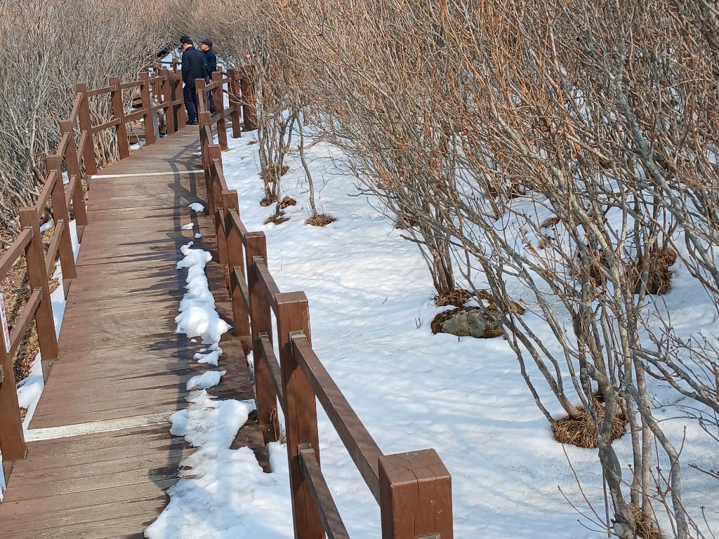 대견봉과 우뚝선 1,048m의 천왕봉을 바라 보면서 참꽃군락지 사이의 데크 길을 걷다보면 기바위가 나타나고 높은 산봉오리에 우뚝 선 비슬산 강우레이더관측소를 돌아오는 길에 아직도 곳곳에 눈이 녹지않아 설경에 감탄을 했습니다.