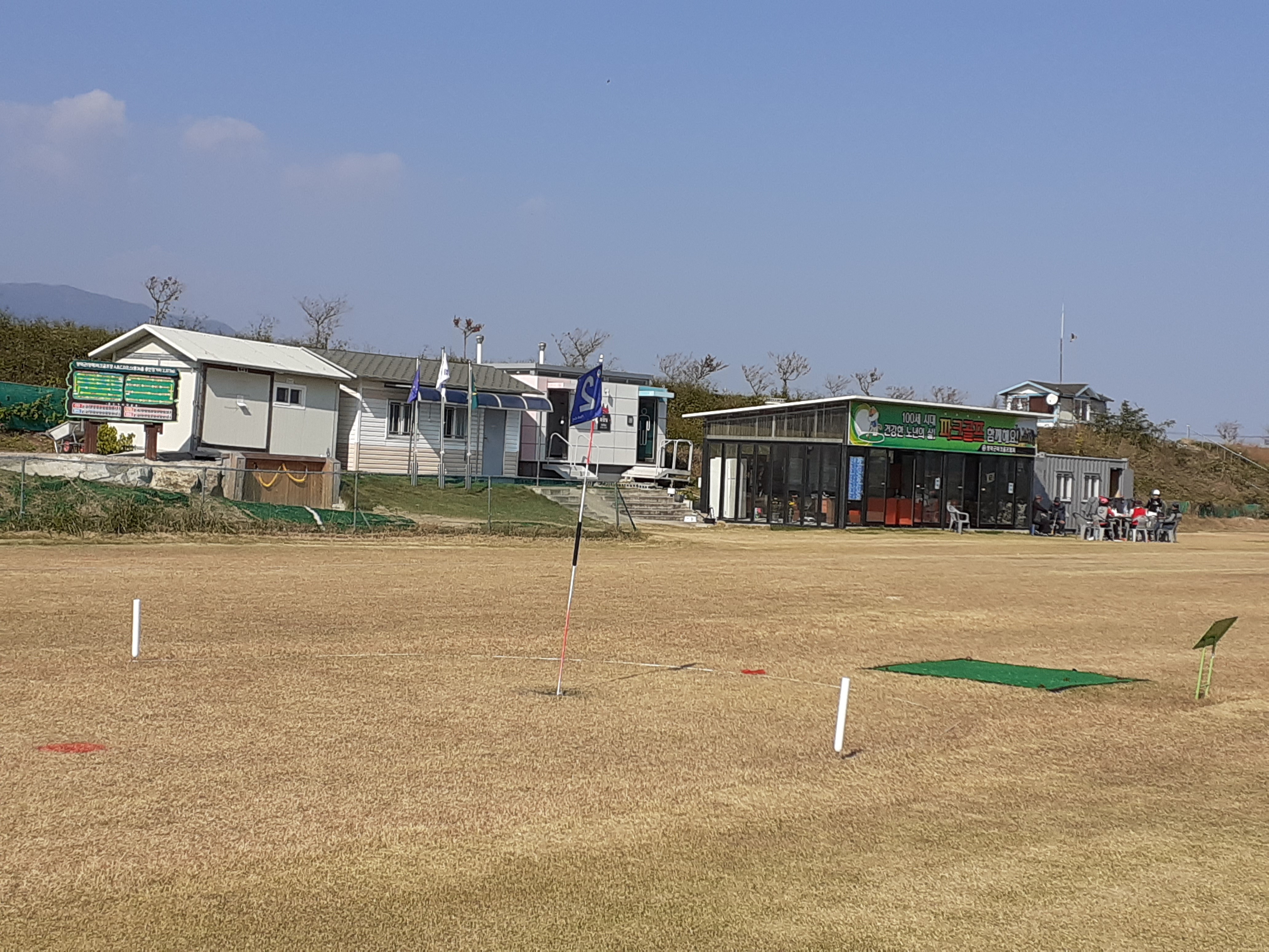 파크골프장내에 사무실, 회의실, 수세식 화장실 외에 회원들이 커피를 마실수 있는 넓은 쉼터 공간이 마련되어,