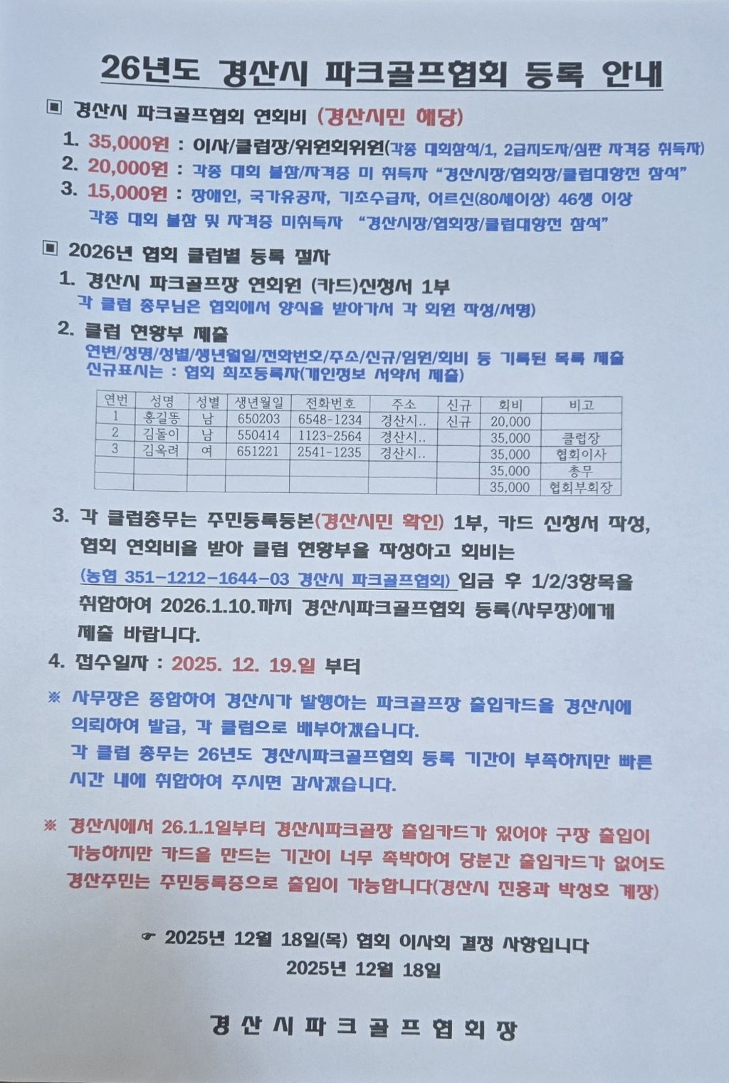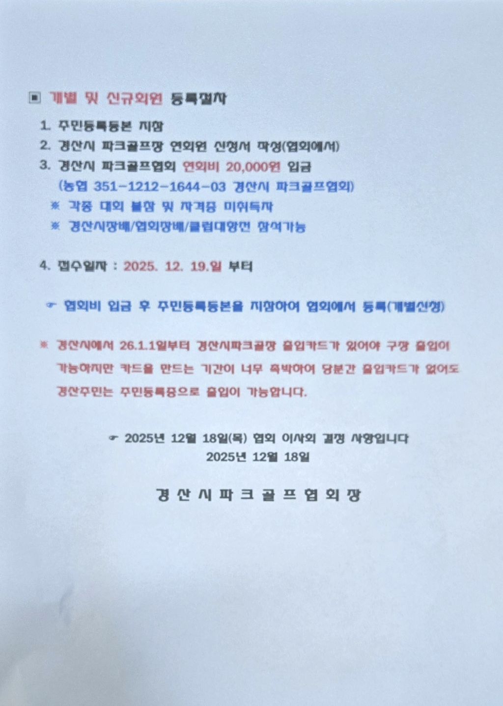 26년도 경산시 파크골프협회 등록 안내 작성자천종우|작성시간25.12.18|조회수45 목록 댓글 0 글자크기 작게가 글자크기 크게가 26년도 경산시 파크골프협회 등록 안내 다음검색 현재 게시글 추가 기능 열기 북마크 공유하기 신고 센터로 신고 댓글 댓글 0 댓글쓰기 답글쓰기 댓글 리스트