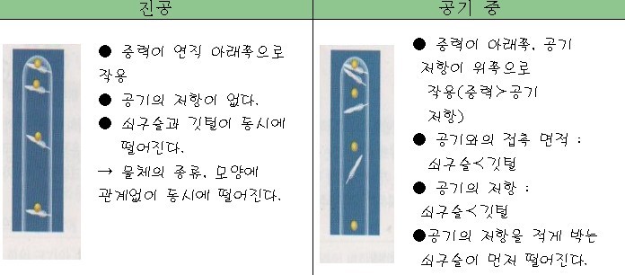 ③ 진공과 공기 중에서의 낙하 운동
