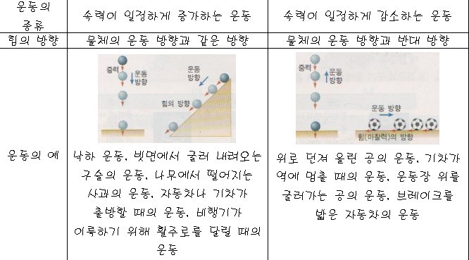 예) 낙하운동, 빗면을 굴러 내려오는 물체의 운동