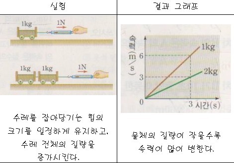 ① 힘의 크기와 속력의 변화(질량 일정) : 속력의 변화 ∝ 힘의 크기