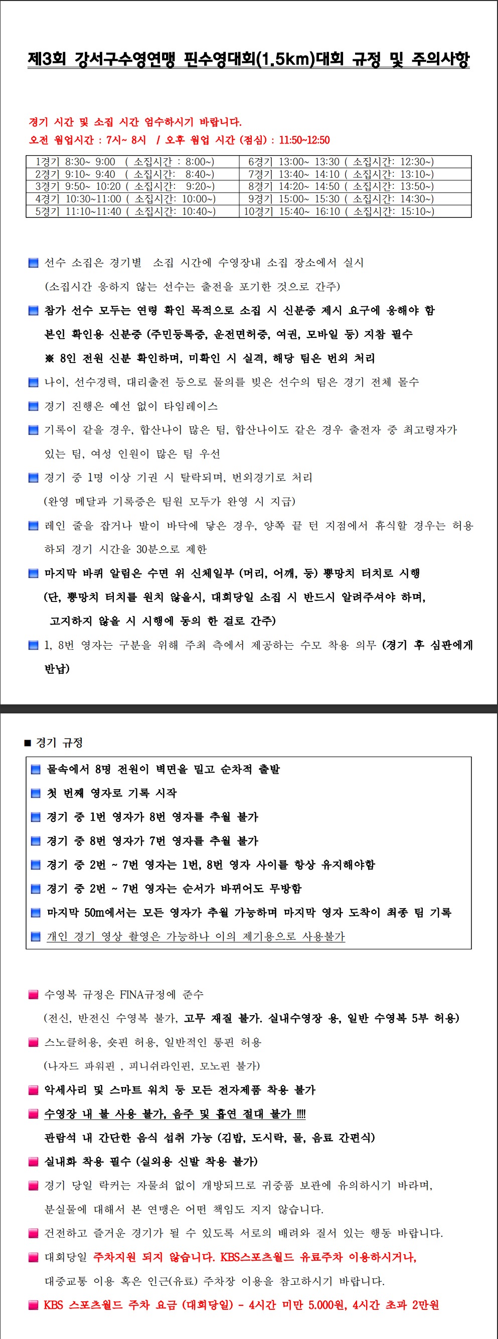제3회 강서구수영연맹 핀 대회 추가 공지 및 주의 사항 작성자네모지예|작성시간24.02.20|조회수622 목록 댓글 0 글자크기 작게가 글자크기 크게가 핀대회 추가 공지-240220.pdf115.85KB 첨부파일첨부된 파일이 2개 있습니다. jpeg 파일 스크린샷_20-2-2024_223534_.jpeg 다운로드 pdf 파일 핀대회 추가 공지-240220.pdf 다운로드 다음검색 현재 게시글 추가 기능 열기 북마크 신고 센터로 신고 댓글 댓글 0 댓글쓰기 답글쓰기 댓글 리스트