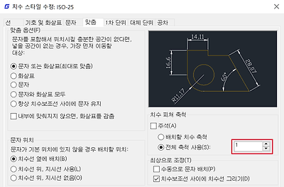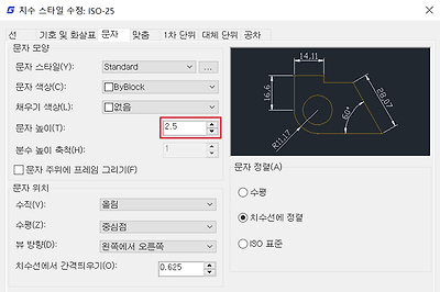 3) 문자 탭에서 문자 높이를 변경하거나, 맞춤 탭에서 축척 비율을 변경합니다.