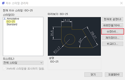 즉, 치수스타일 관리자에서 한번에 변경하기 힘듭니다. 따라서 아래 방법들을 사용하여야 합니다.