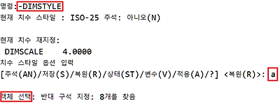 ◆ 명령어 입력) '-dimstyle' →'a' → 치수 선택