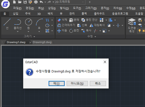저장되지 않았다면 아래와 같이 도면 저장을 묻는 창이 뜹니다. 해당 기능은 탭을 오른쪽 마우스로 클릭하여 실행할 수도 있습니다. 기타 문의하실 사항이 있다면 (주)모두솔루션 기술지원부로 연락 주시기 바랍니다. Tel : 02-857-0976 / Mail : support@modoosol.com 감사합니다. |