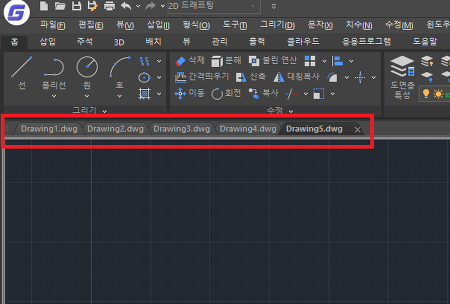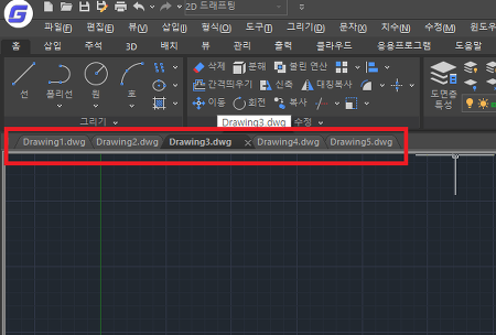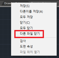 [현재 도면 탭 외의 도면 탭 닫기] 일반적으로 현재 보고있는 도면 탭을 닫을 때는 닫기 또는 명령어 CLOSE를 사용합니다.