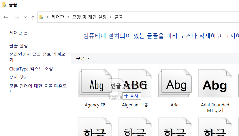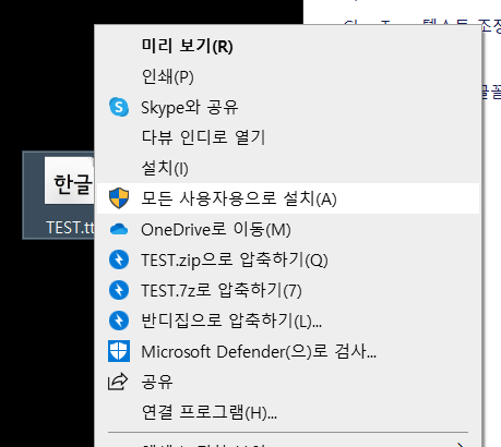 또는 해당 글꼴 파일을 우클릭하여 모든 사용자용으로 설치하는 방법도 있습니다. (윈도우10기준)