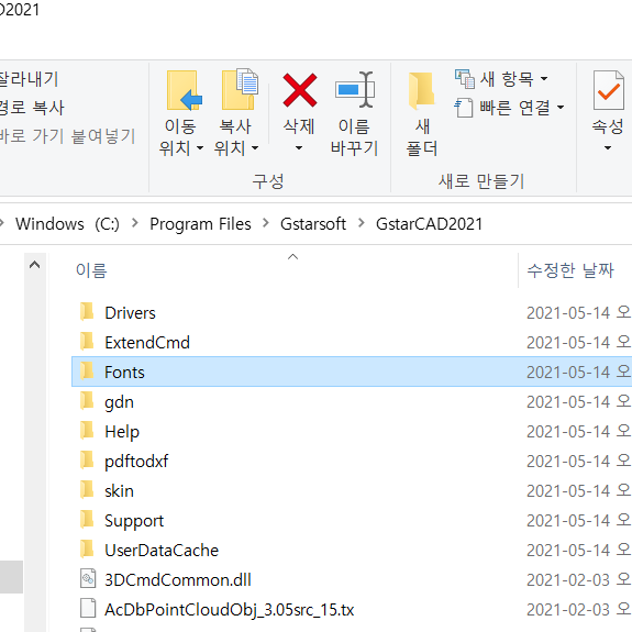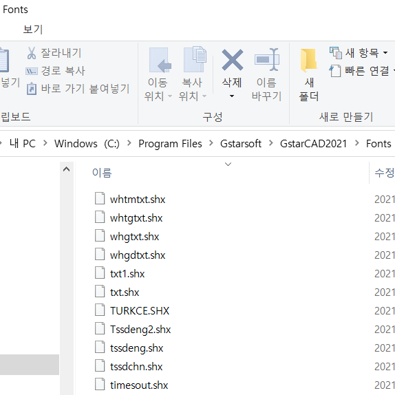 SHX 글꼴은 GstarCAD 프로그램 폴더 내 Fonts 폴더에 저장되는 SHX 확장자 파일로