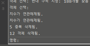 3. 대화 상자가 닫히면서 중복된 객체도 한 번에 지워지는 것을 명령행에서 확인할 수 있습니다.