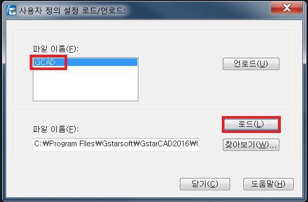 5. 우측하단의 찾아보기 버튼을 누른 후 GstarCAD 설치 폴더의 아래의 경로로 이동합니다.
