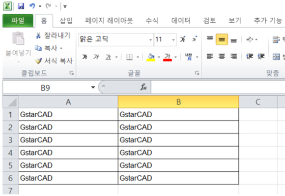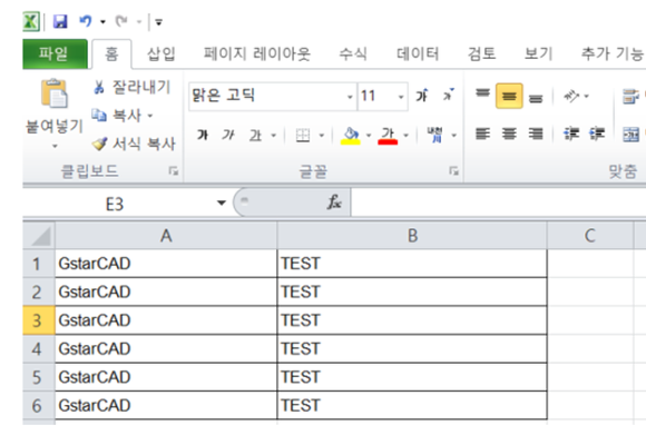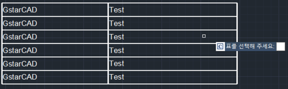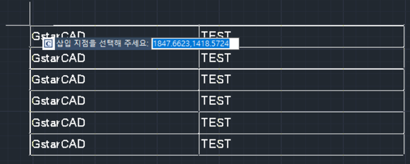 5. GstarCAD로 돌아와서 삽입점을 지정하면 테이블이 삽입됩니다.