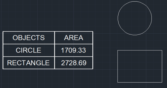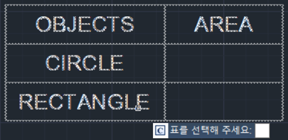 캐드에서 표에 면적 값이 추가된 것을 확인할 수 있습니다.