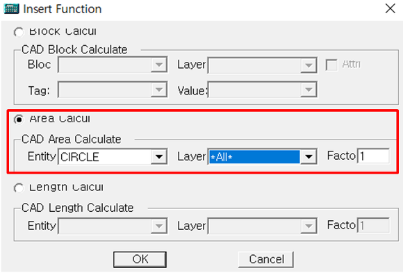 아래의 창이 나오면 빨간 상자처럼 Entity는 CIRCLE를 Layer는 All 을 선택한 후 OK를 누릅니다.