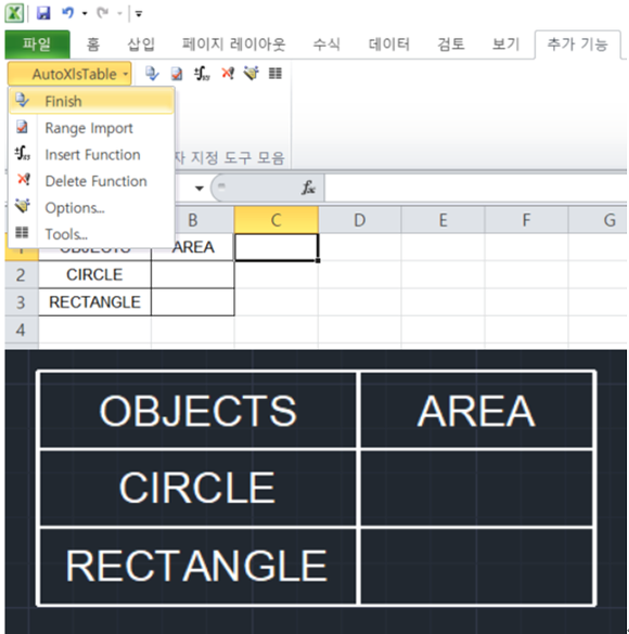 명령어 : _CAOT_AUTOXLSTABLE_USINGPATH
