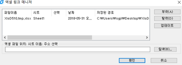 명령어 : _CAOT_AUTOXLSTABLE_MANAGELINK