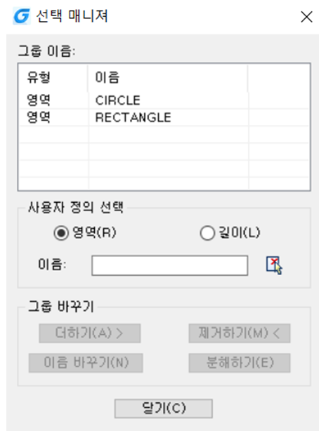 Selection Management 명령을 실행하여 선택 매니저 창을 표시합니다.