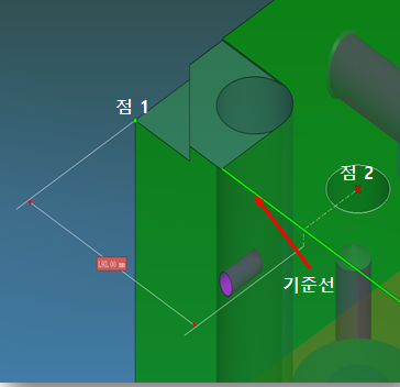 두 점을 선택하여 축 방향 기준의 거리, 기준선 방향의 거리 등을 측정합니다.