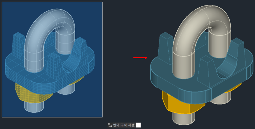 3. 다음 그림과 같이 선택한 객체만 솔리드 형상으로 변경됩니다.