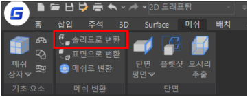 ※ 객체 선택 시 마우스 드래그를 이용하여 여려 유형의 객체를 한 번에 솔리드로 변환할 수 있습니다.