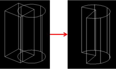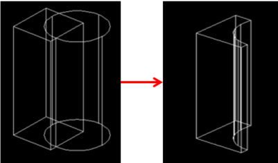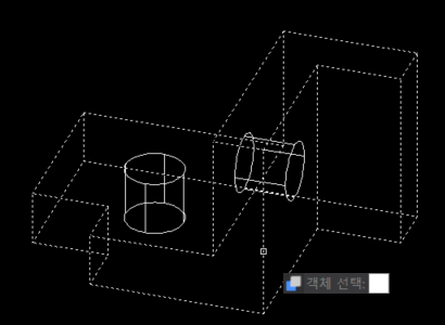 원통 형상과 겹치던 상자 부분이 삭제되며 새로운 형상이 생성됩니다.