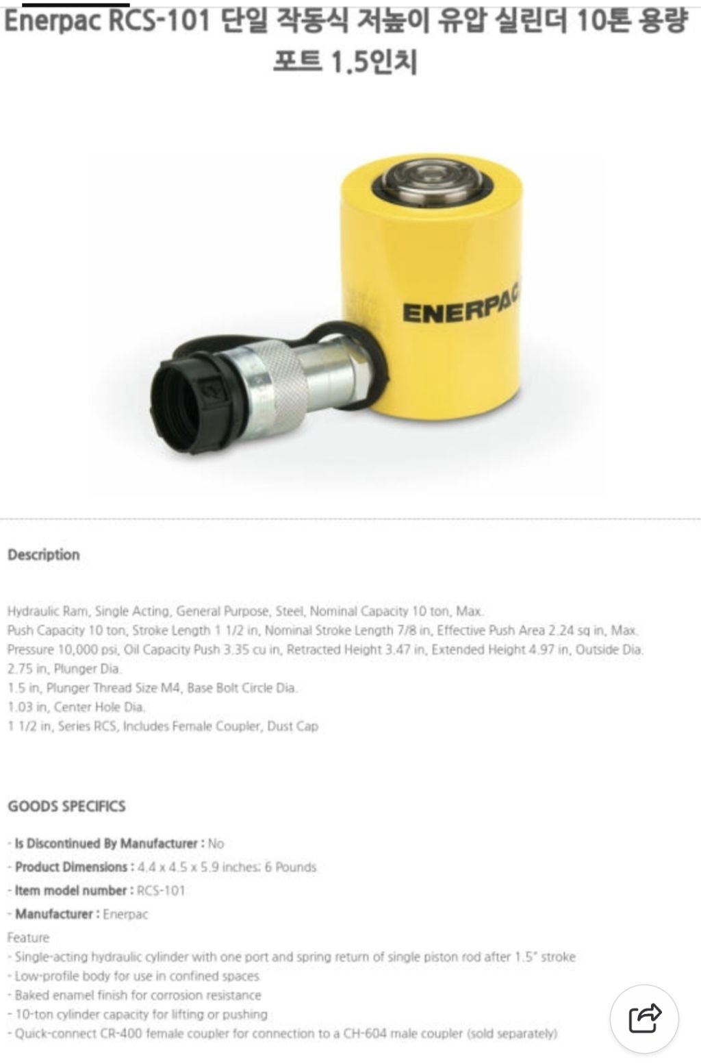 에너팩 유압 스트로크 단통