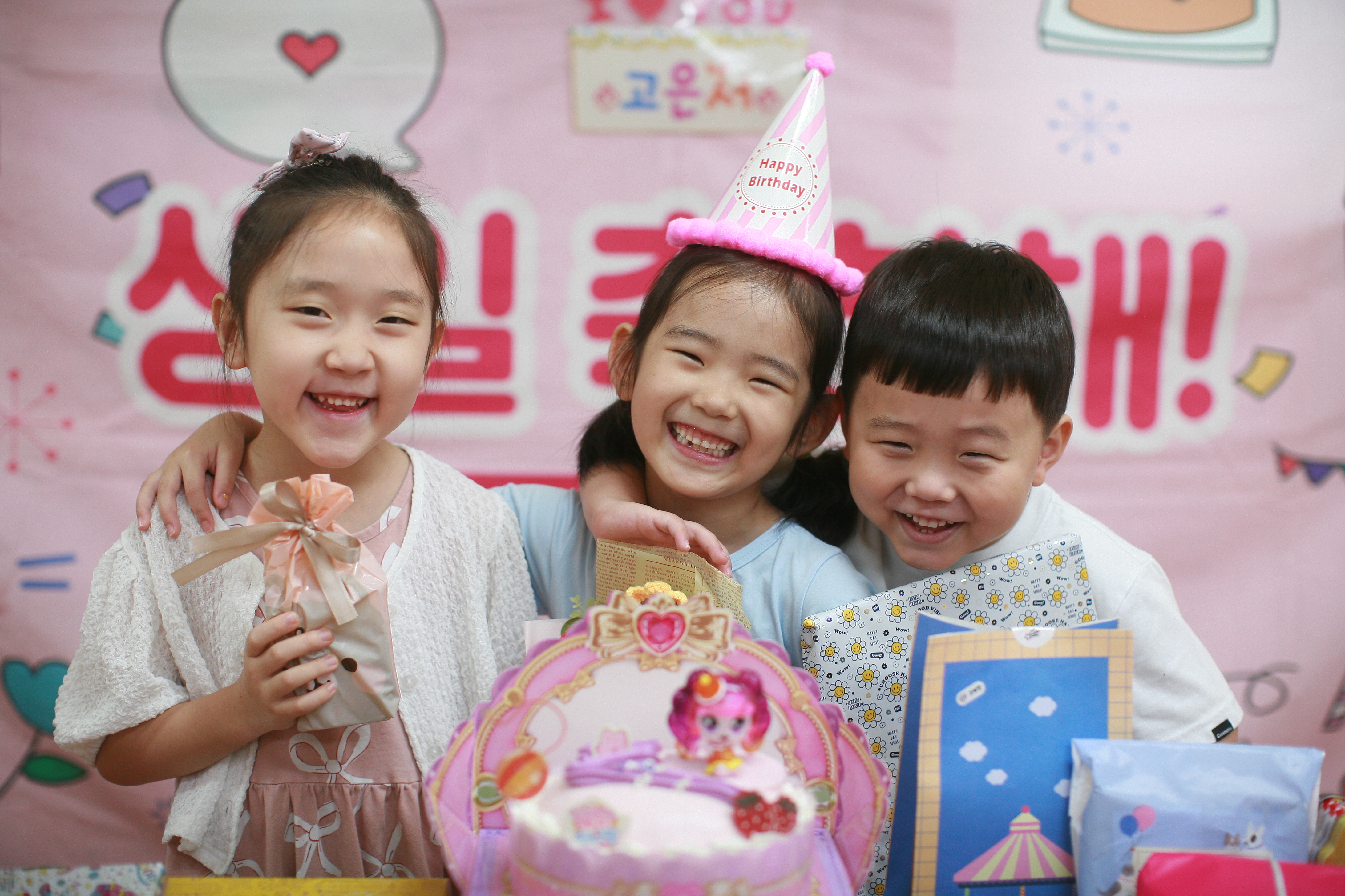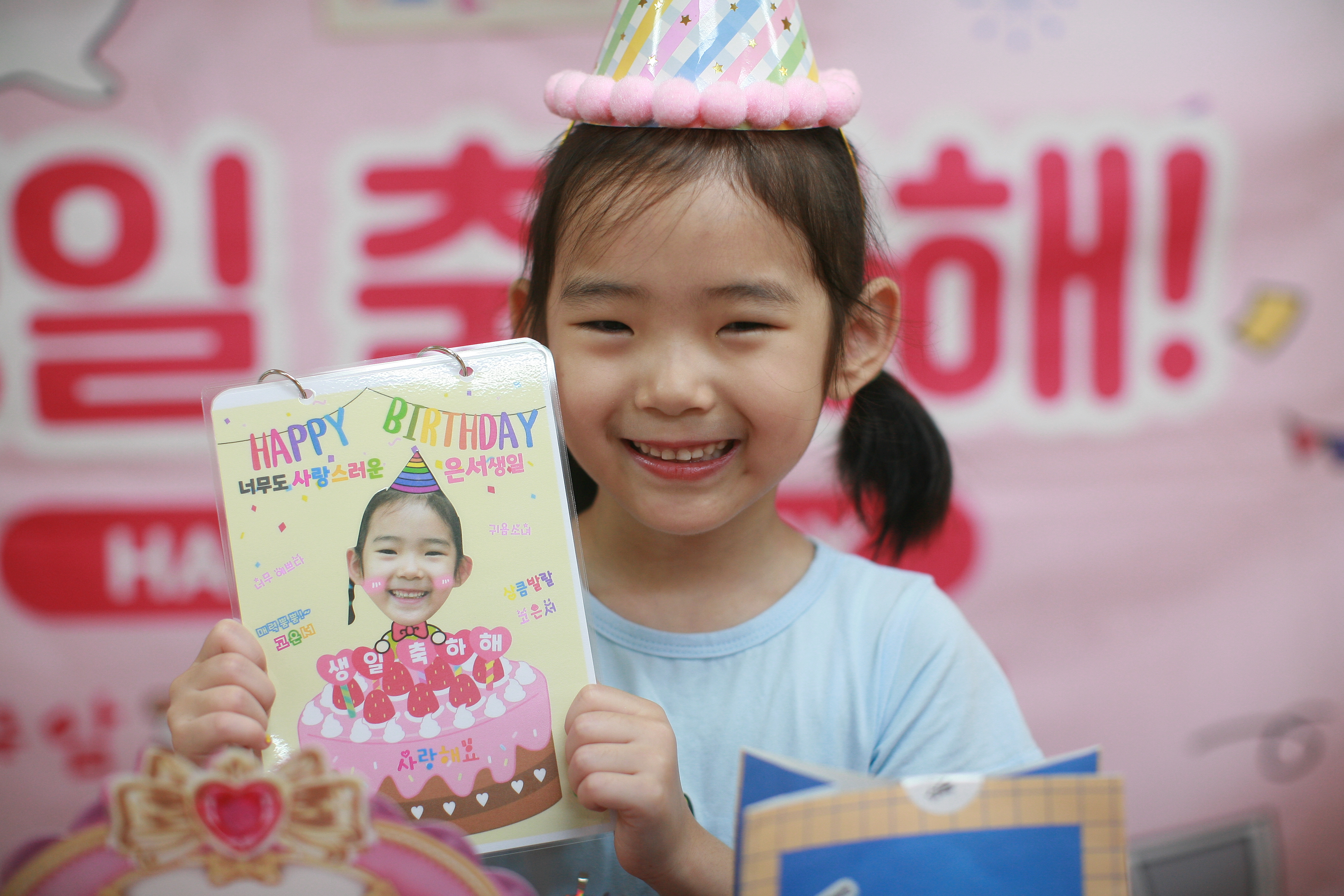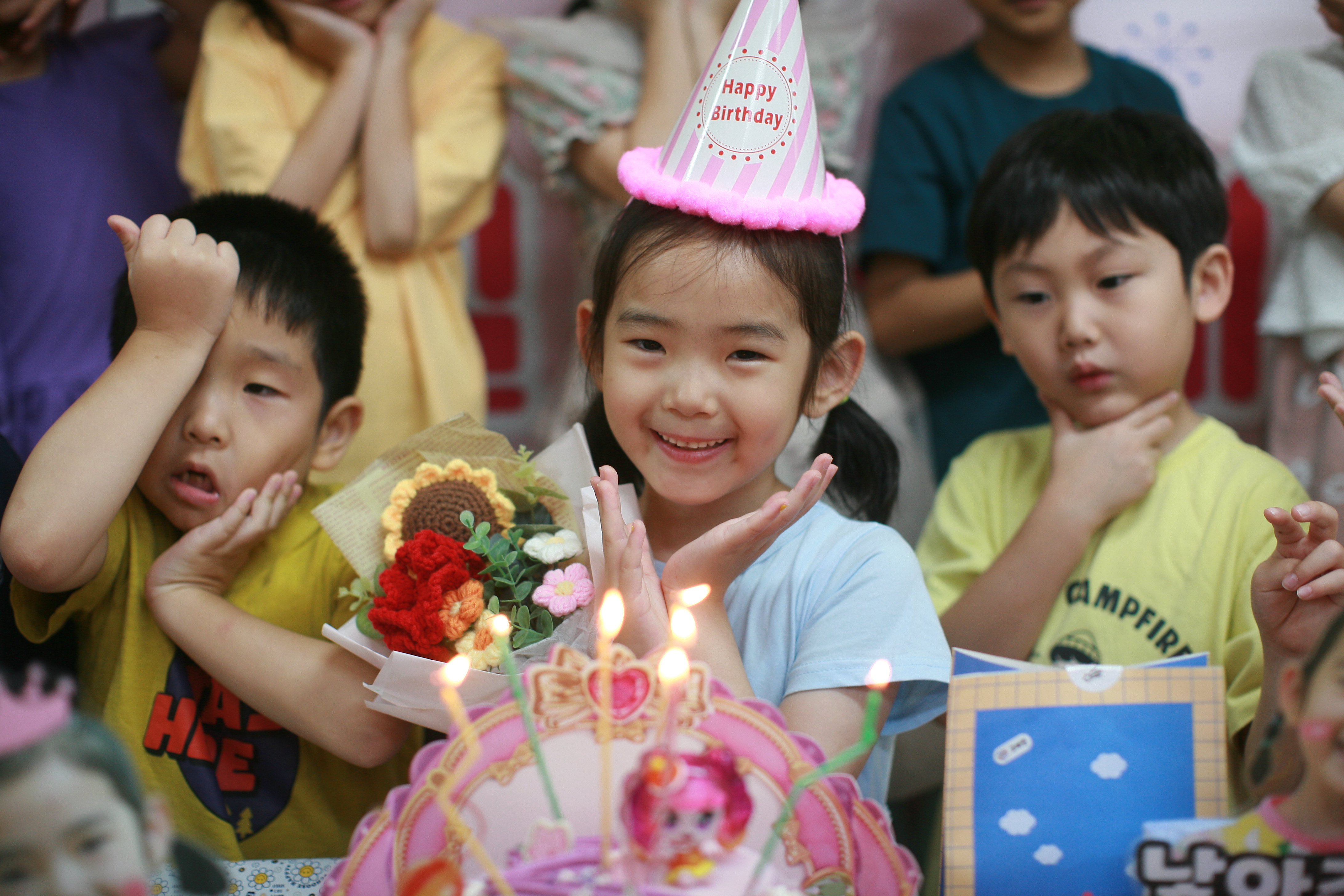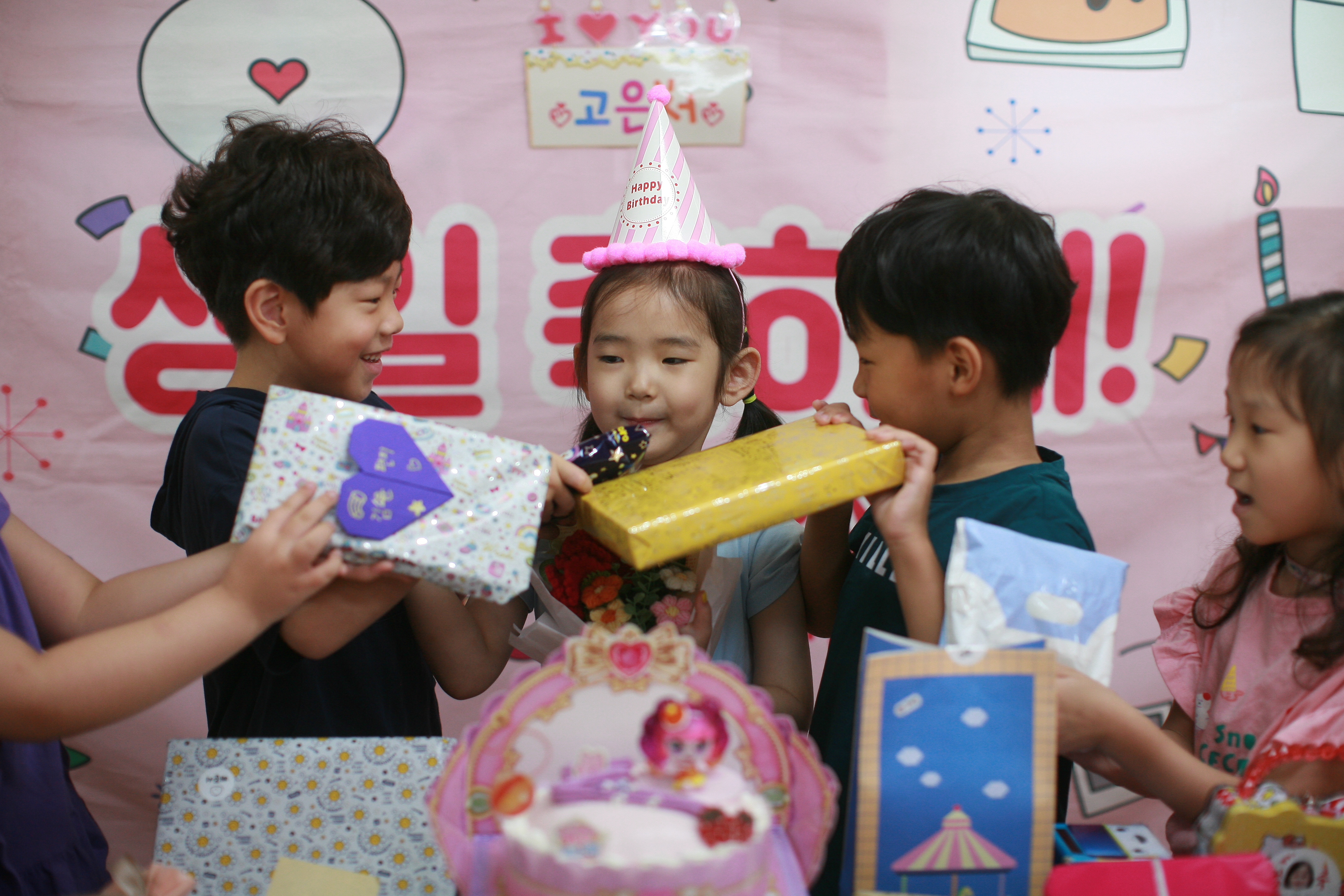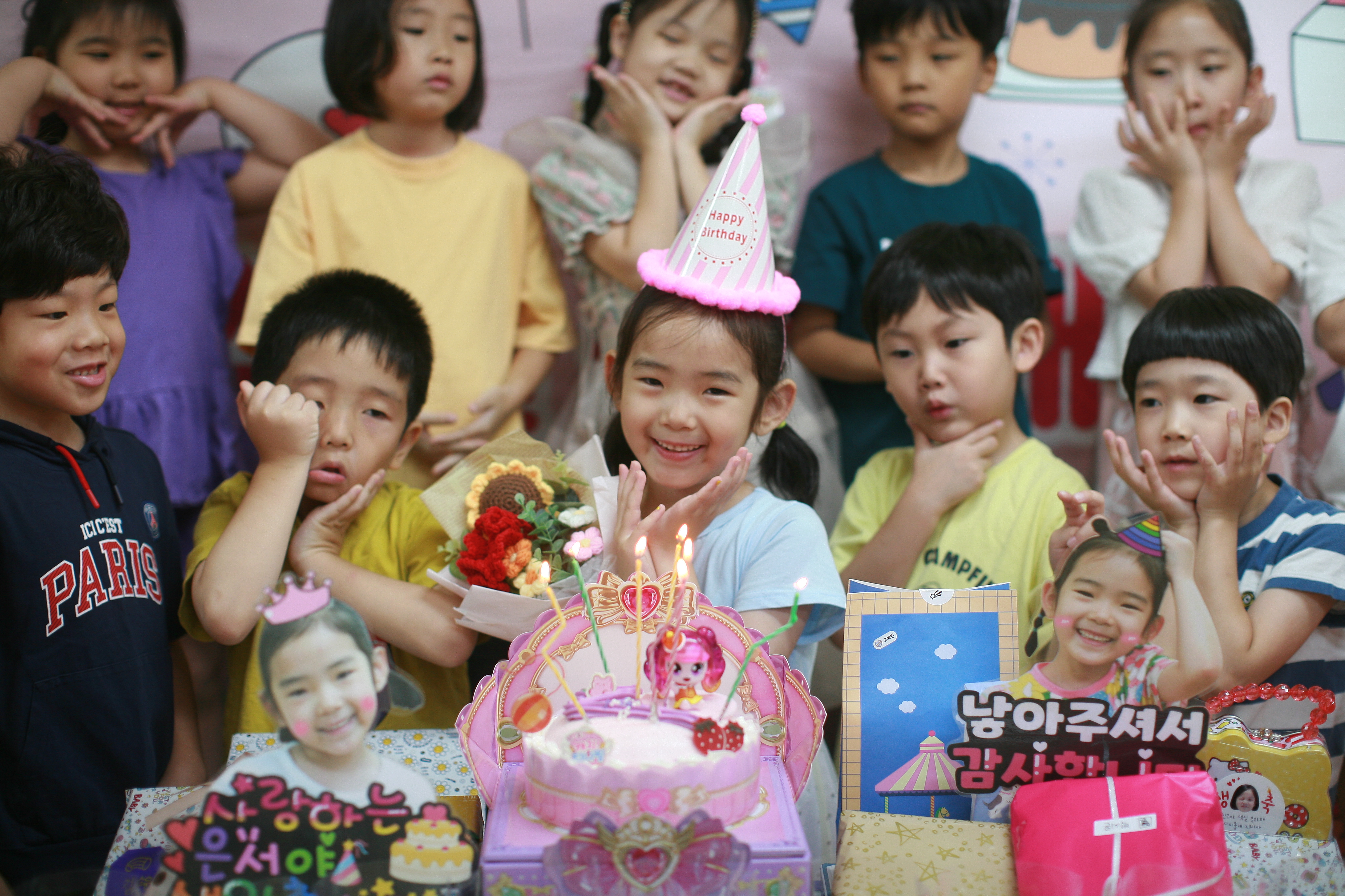 친구들은 모두 "은서야, 생일축하해"하며 환호성을 지릅니다.