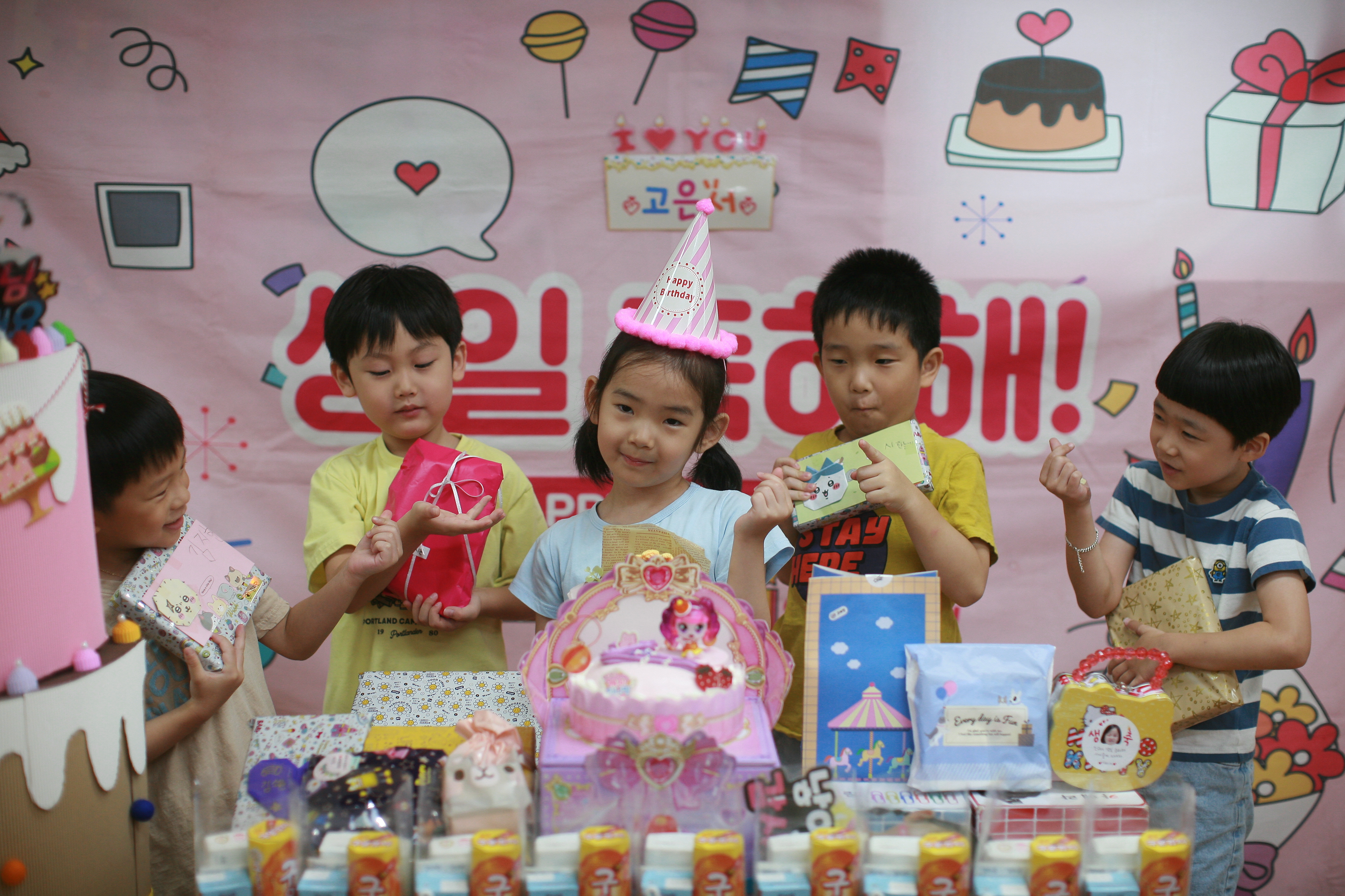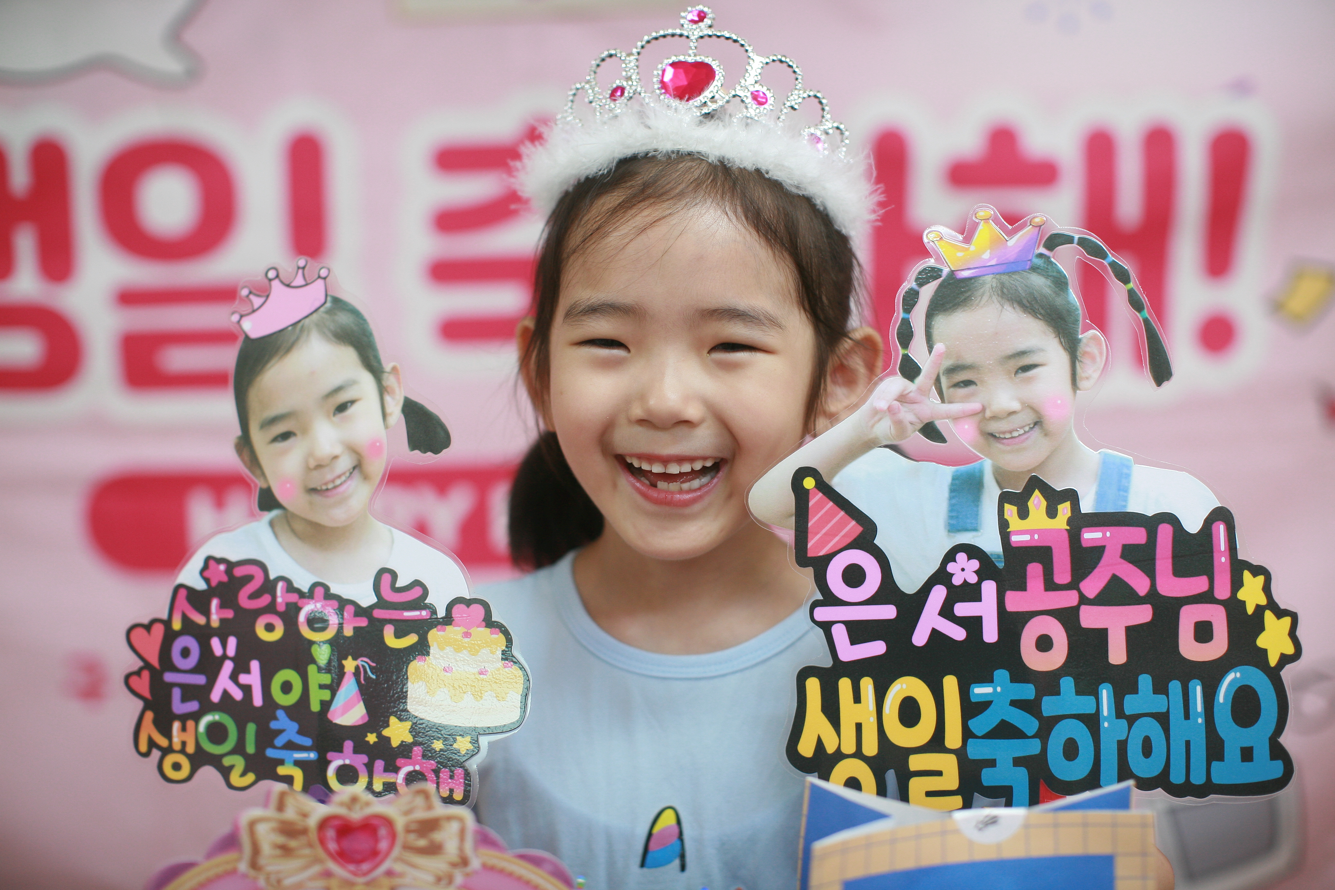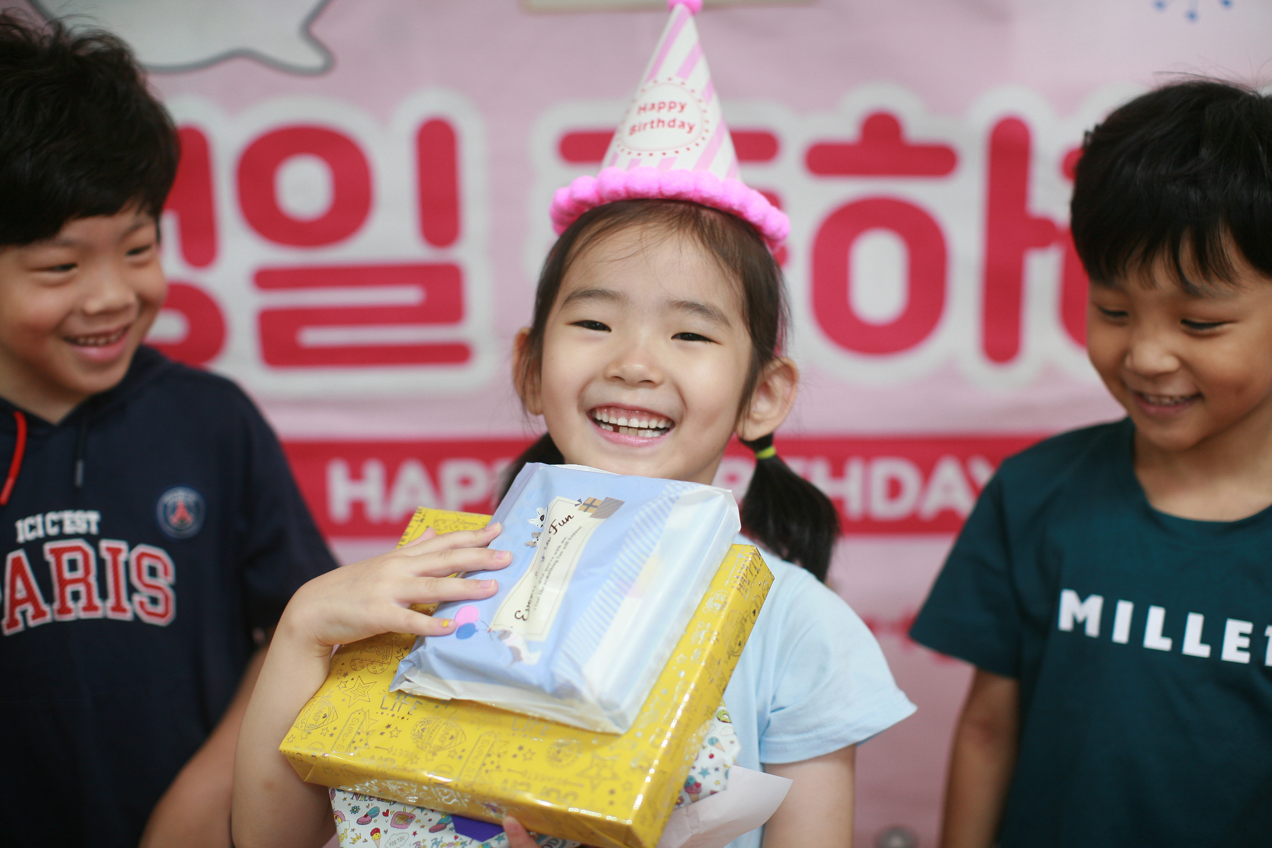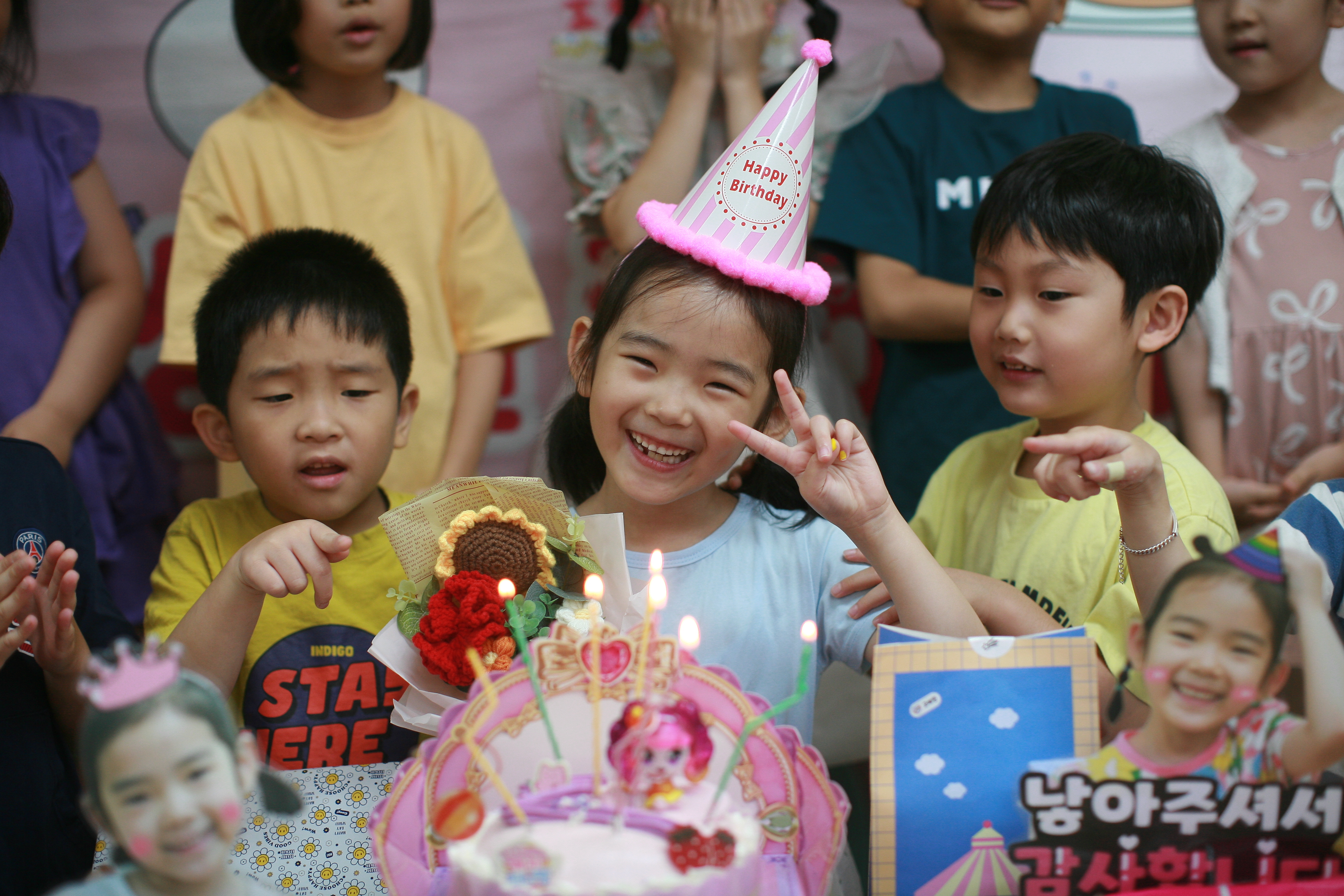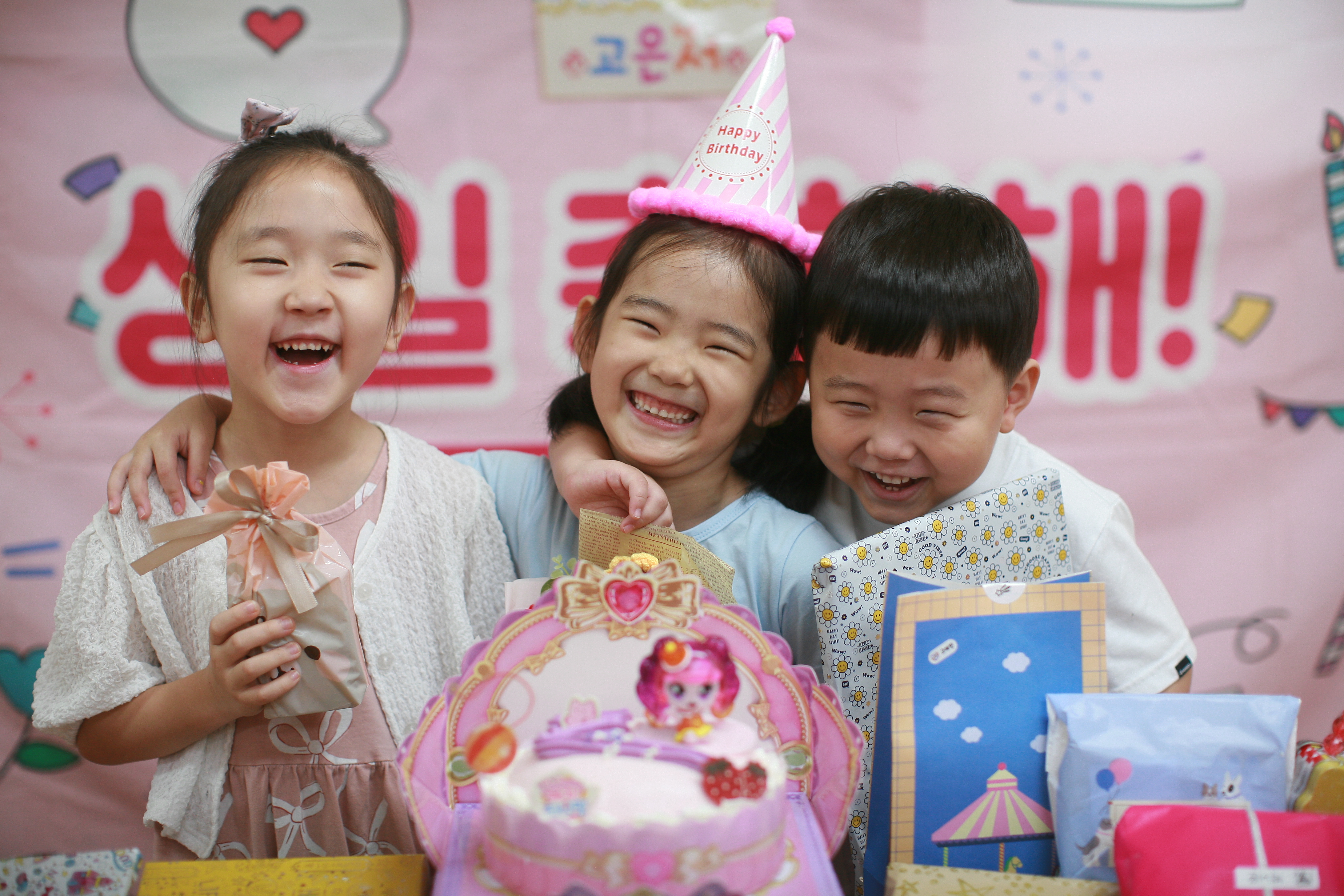 친구들은 모두 "은서야, 생일축하해"하며 환호성을 지릅니다.