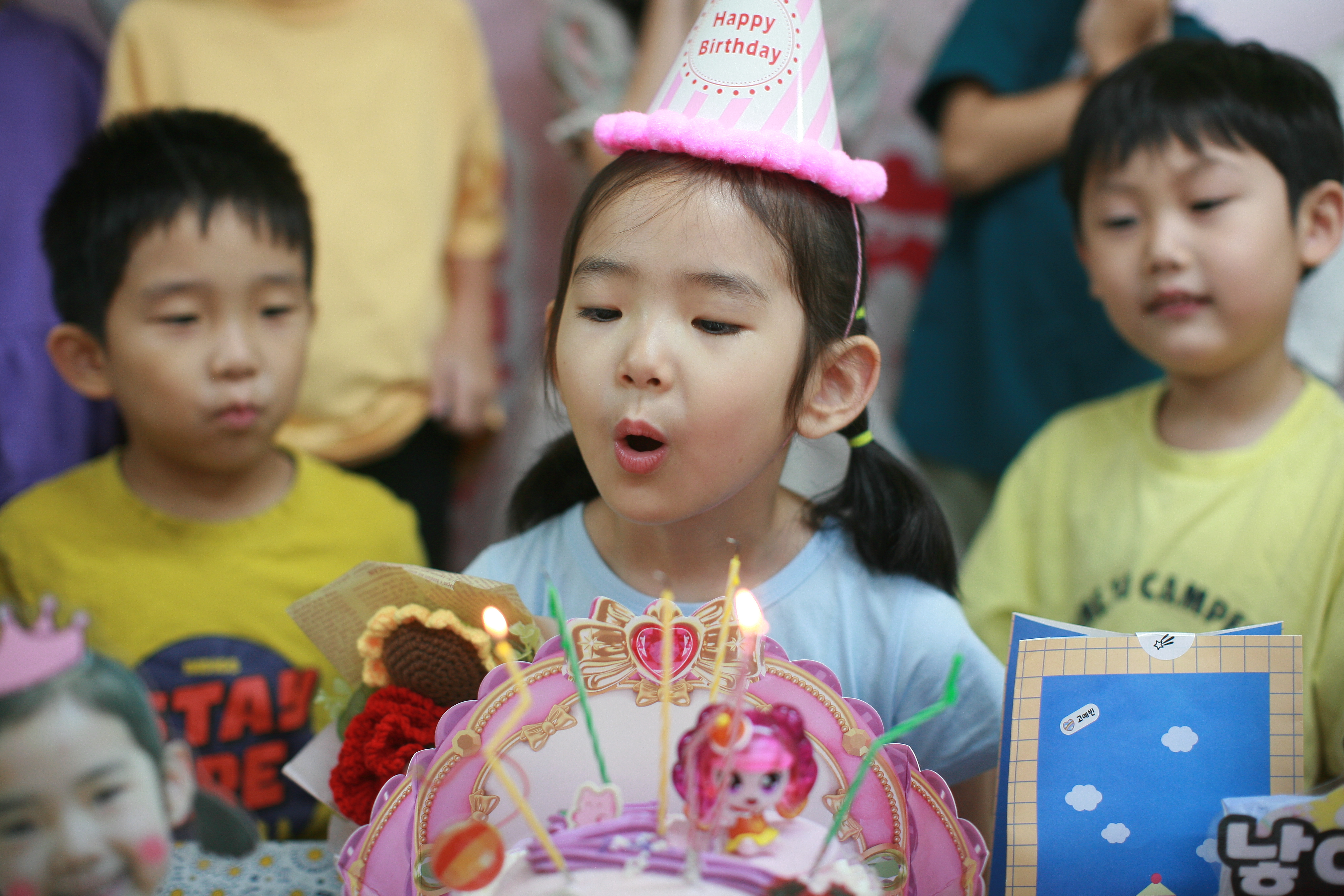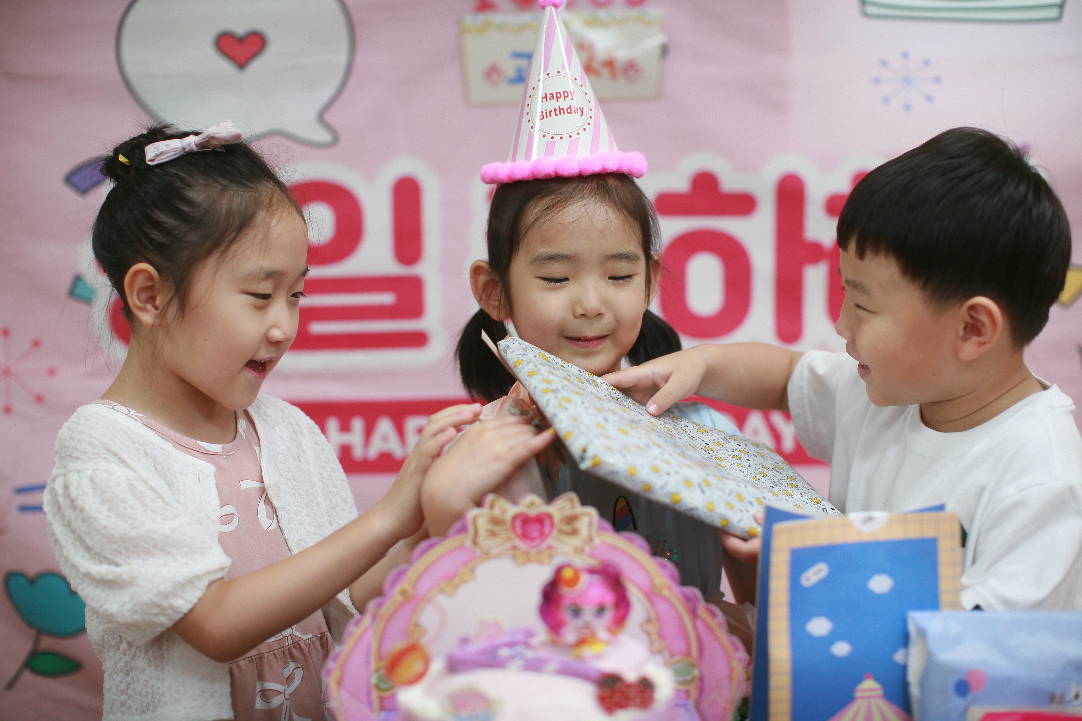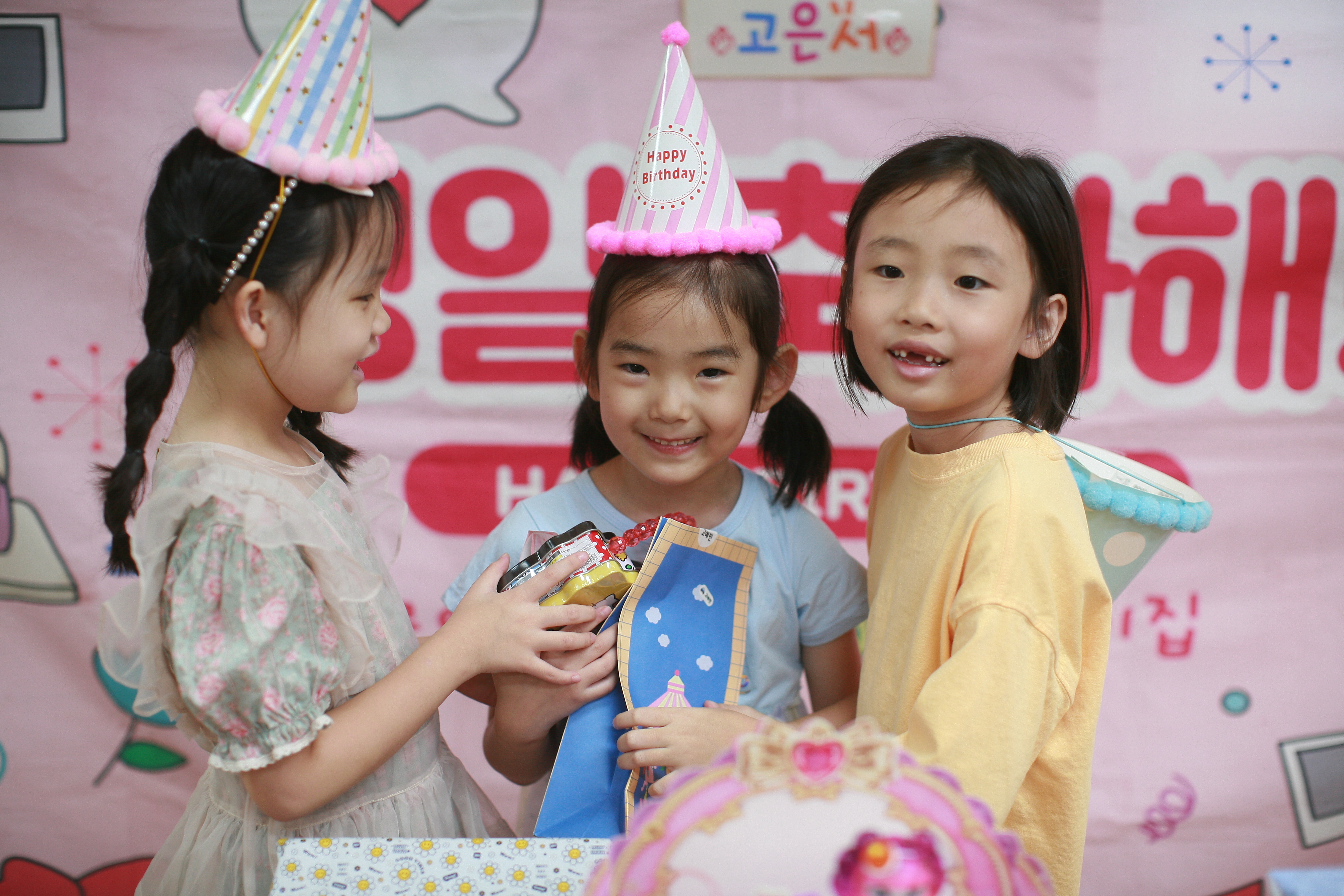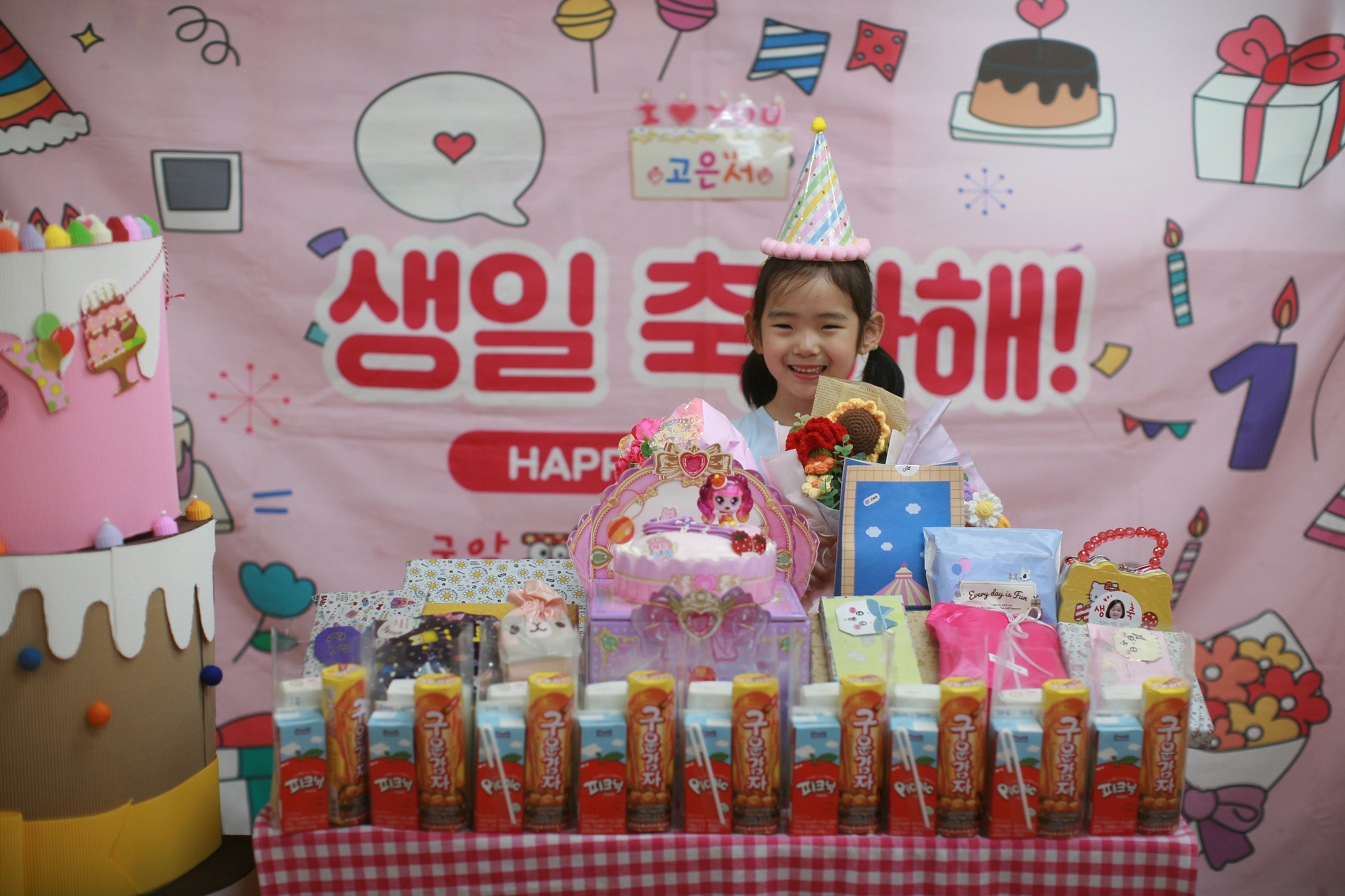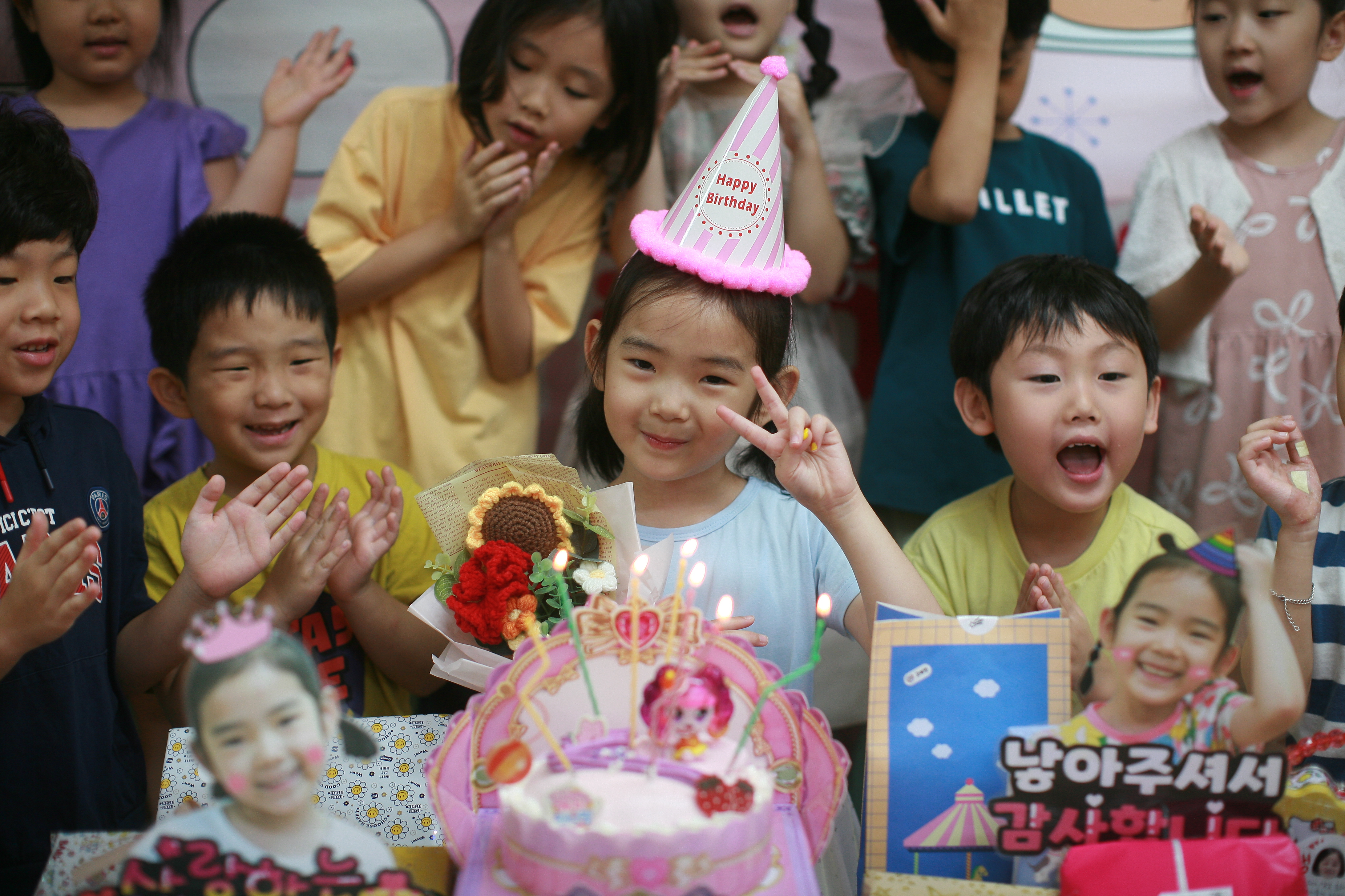 친구들은 모두 "은서야, 생일축하해"하며 환호성을 지릅니다.