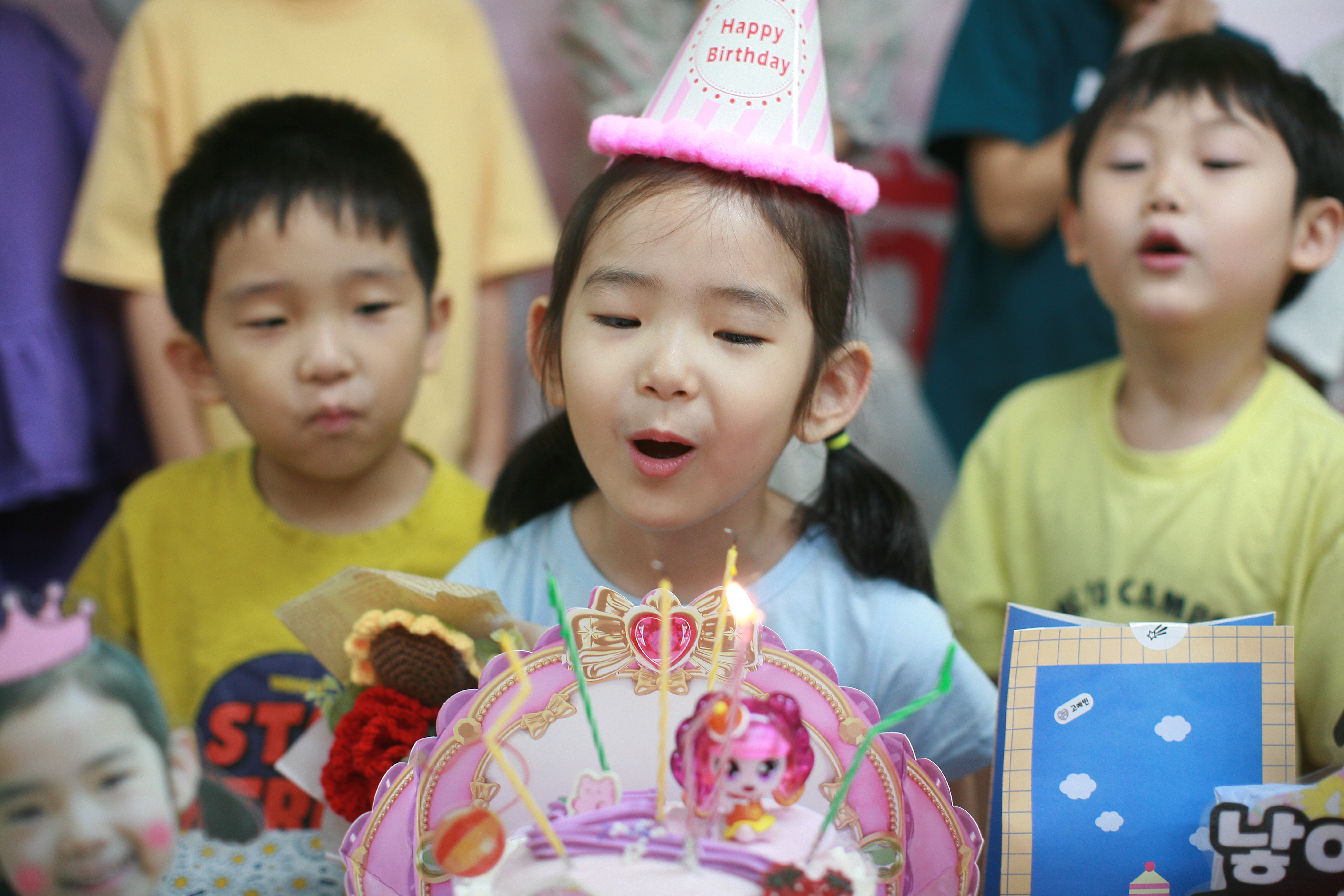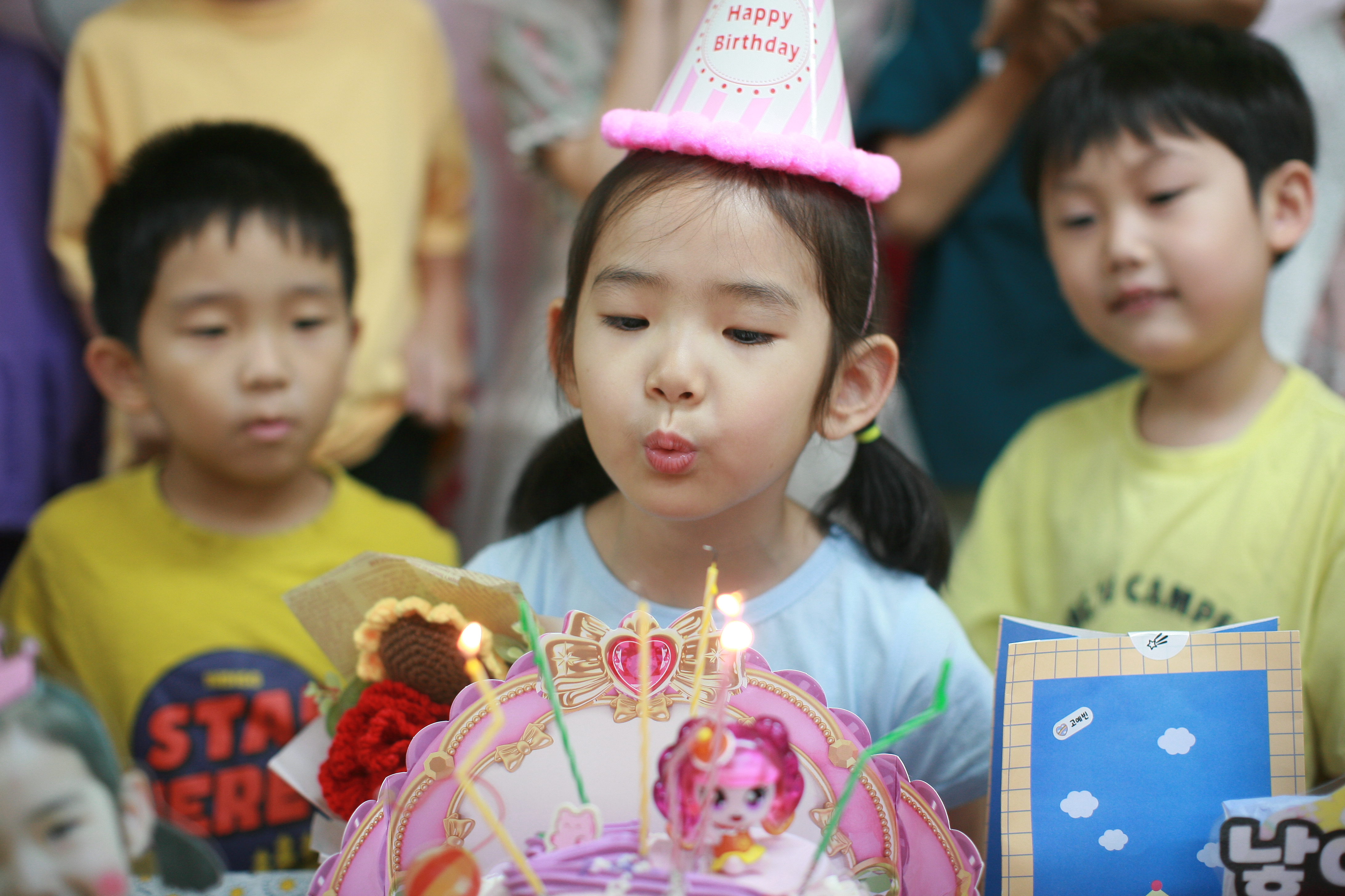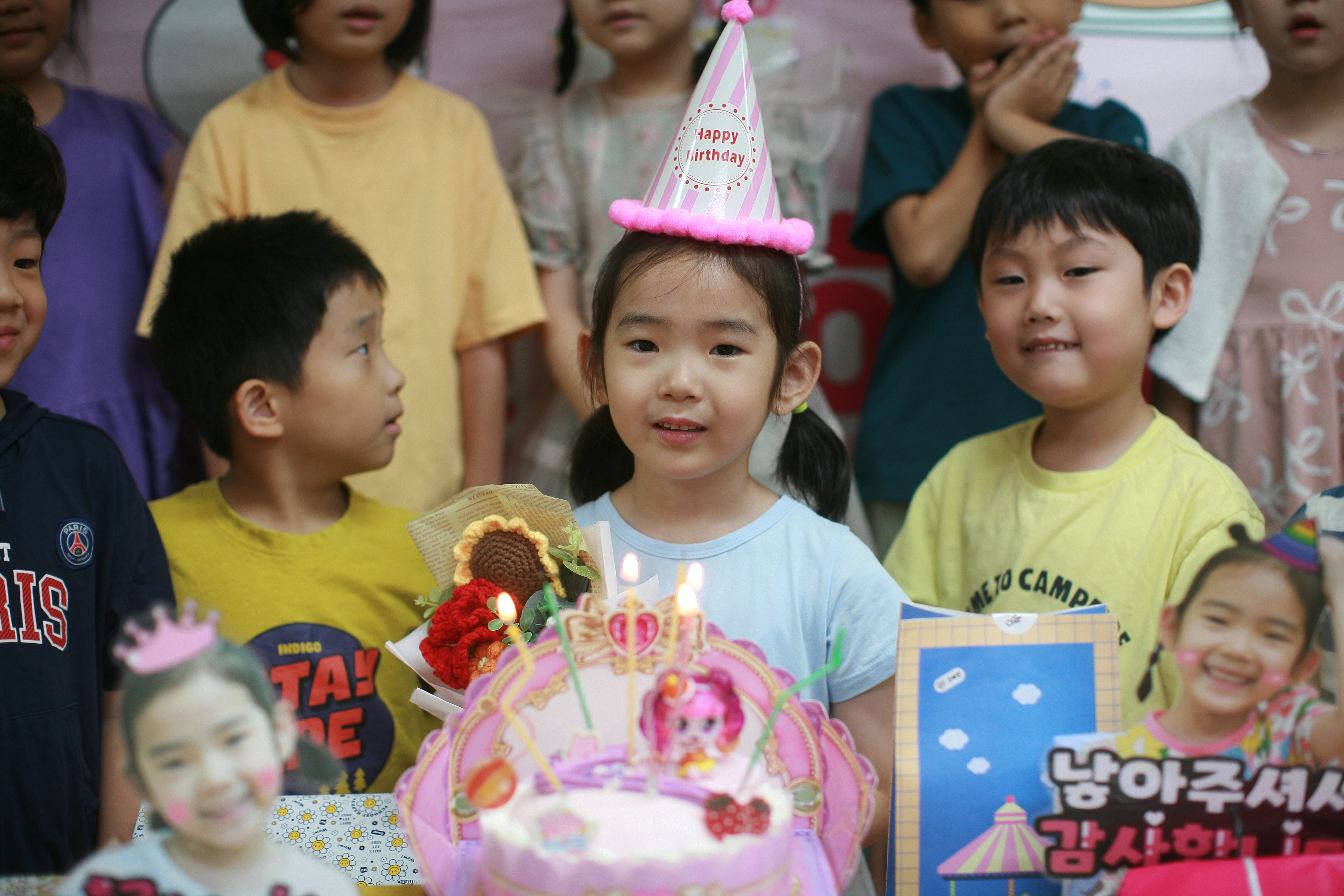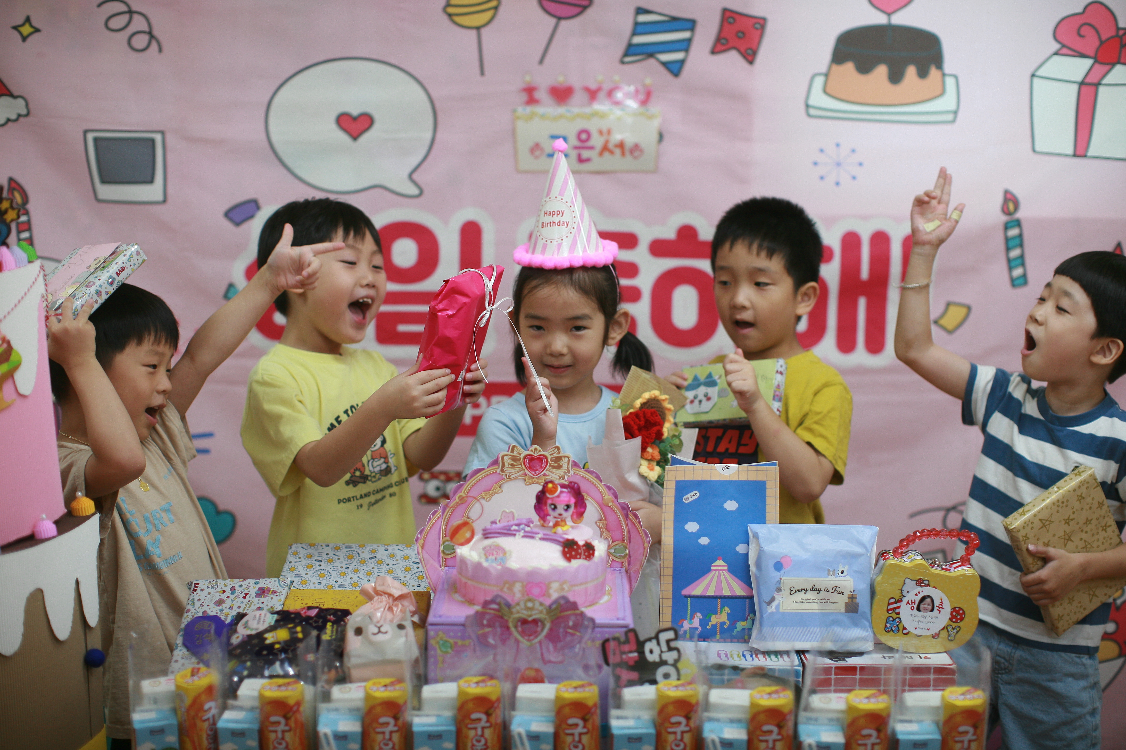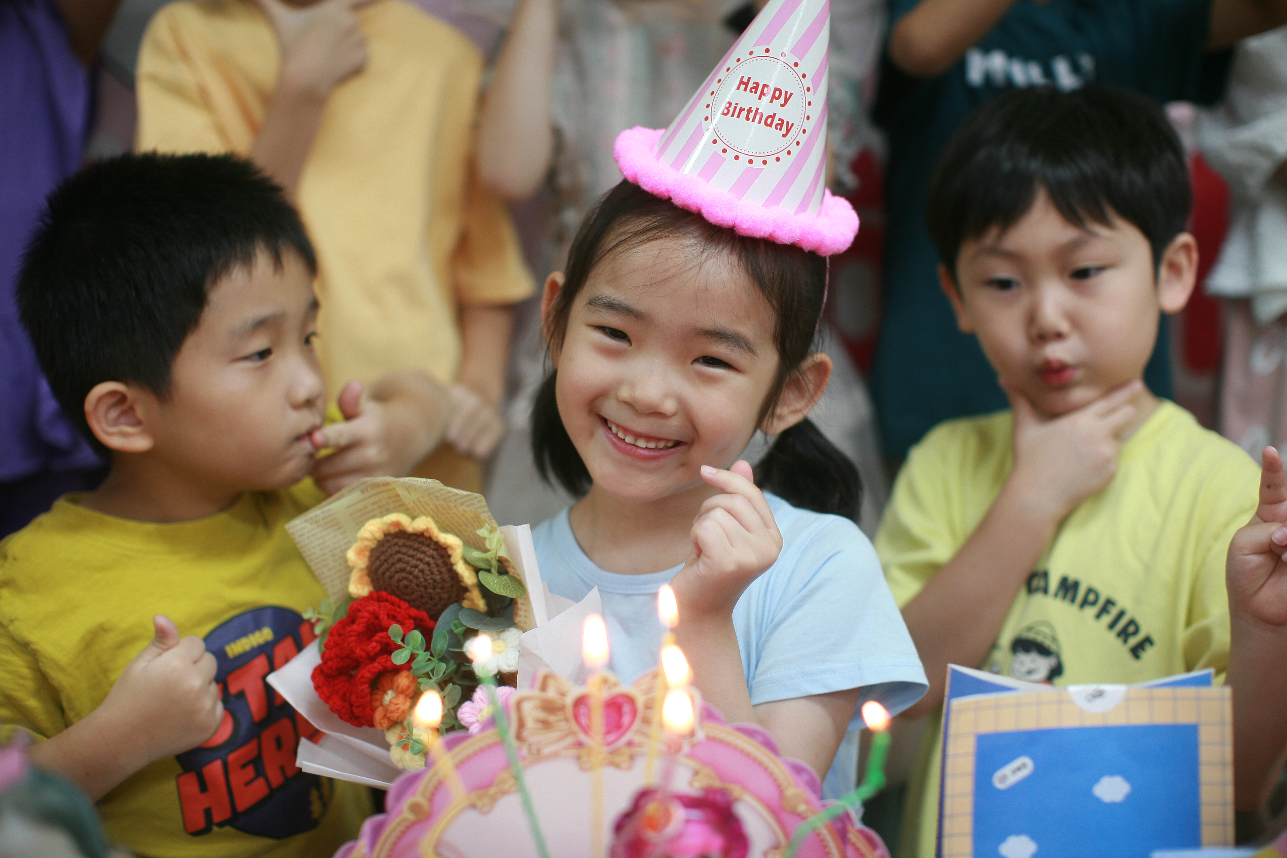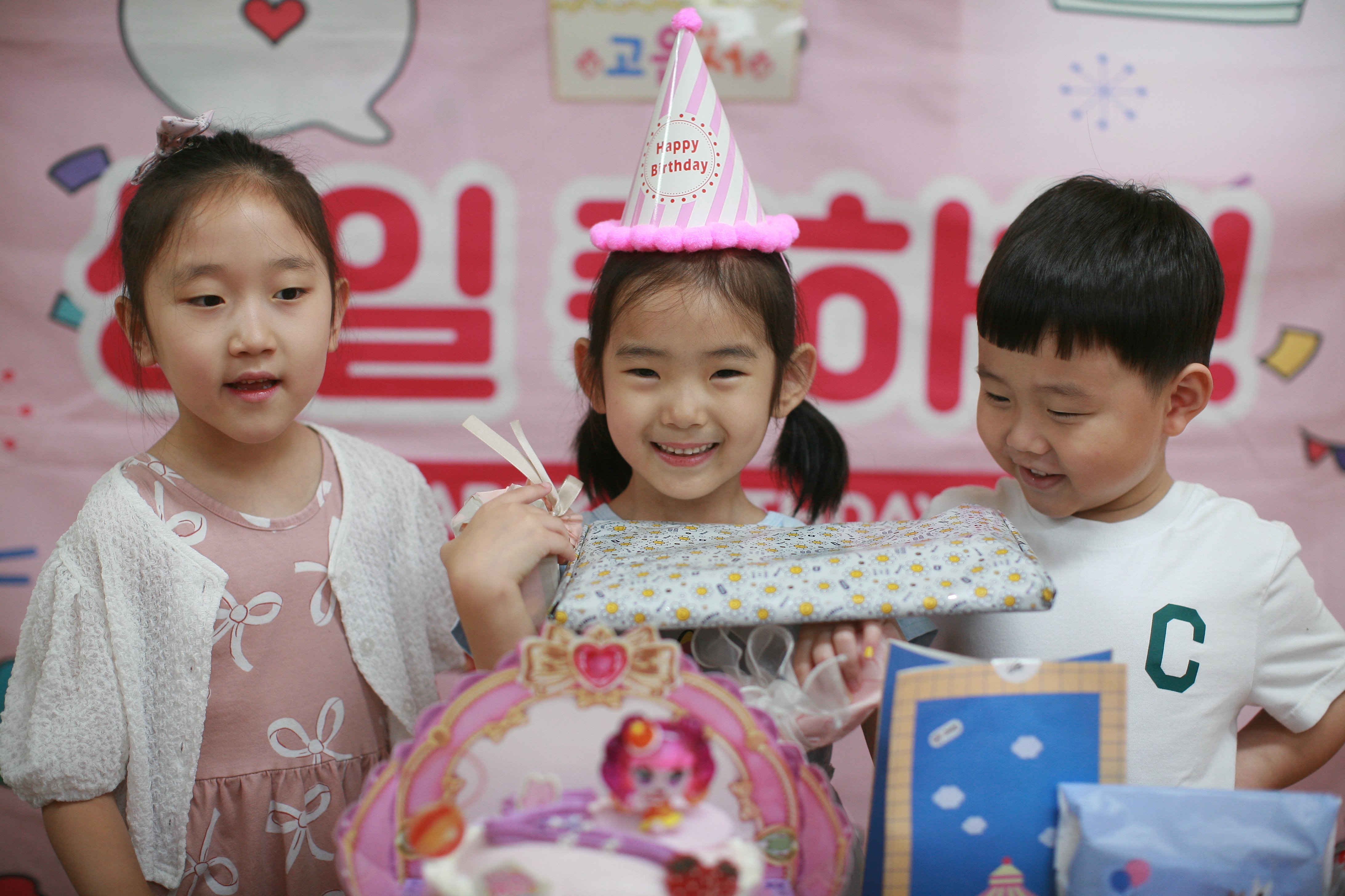 친구들은 모두 "은서야, 생일축하해"하며 환호성을 지릅니다.