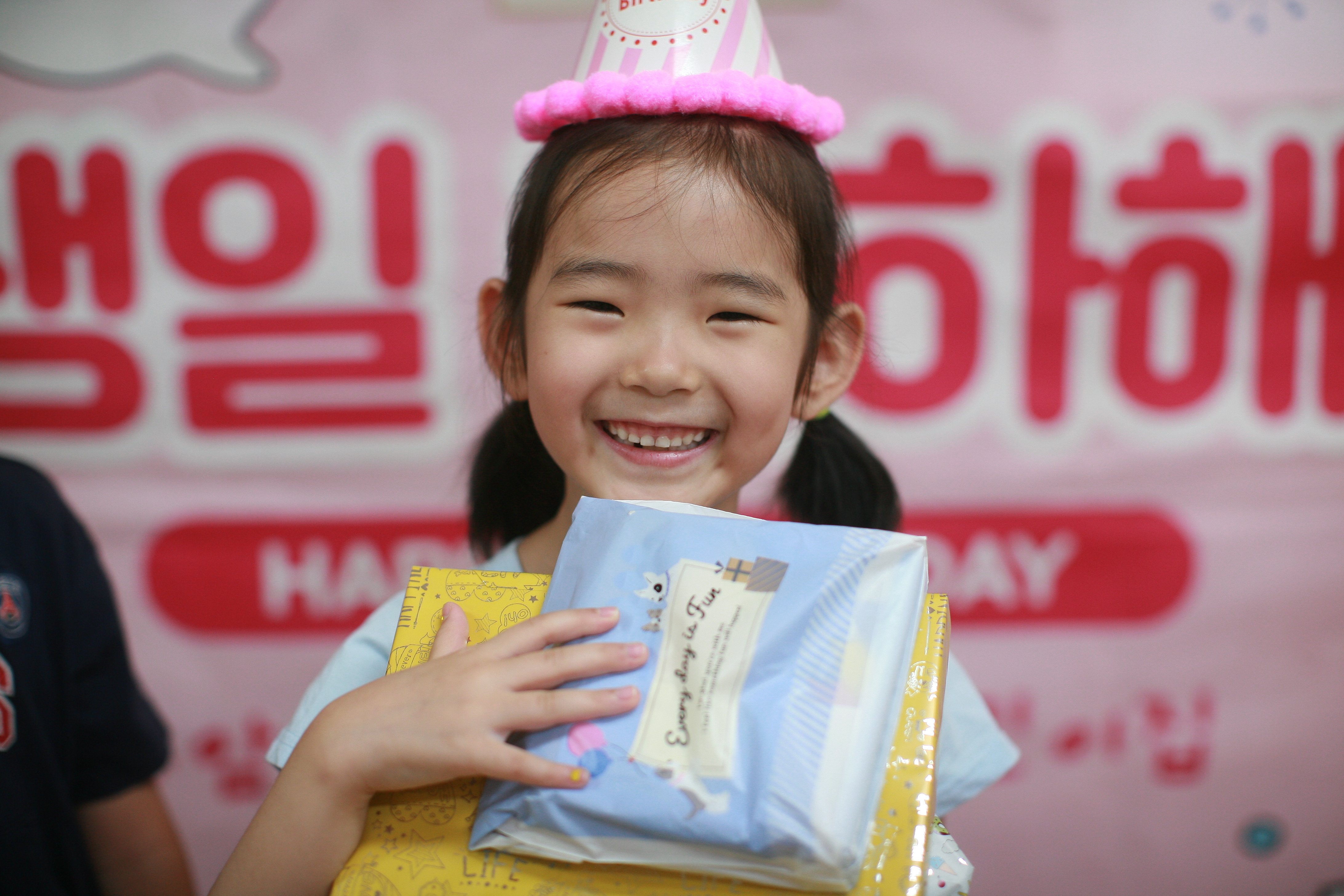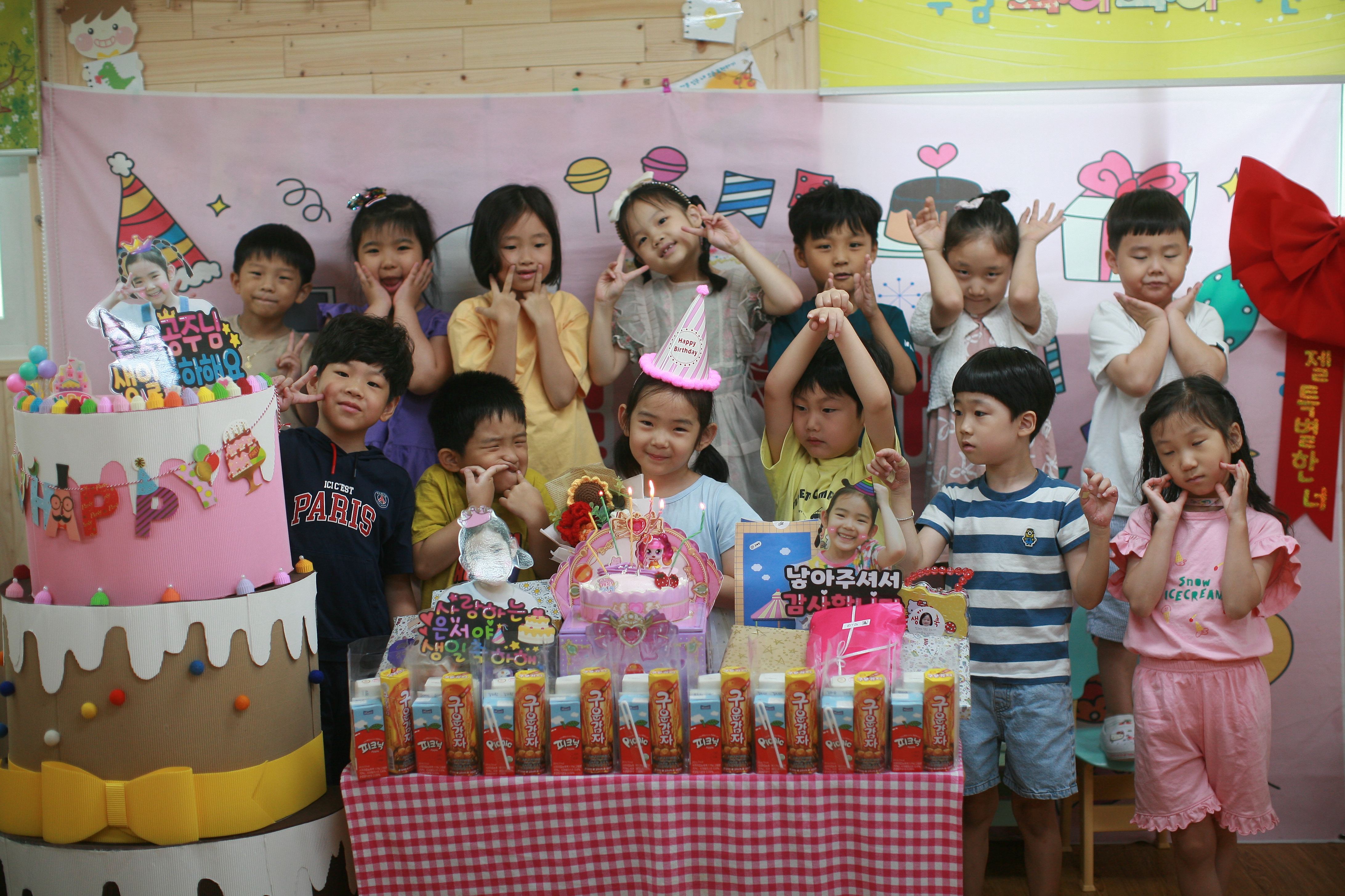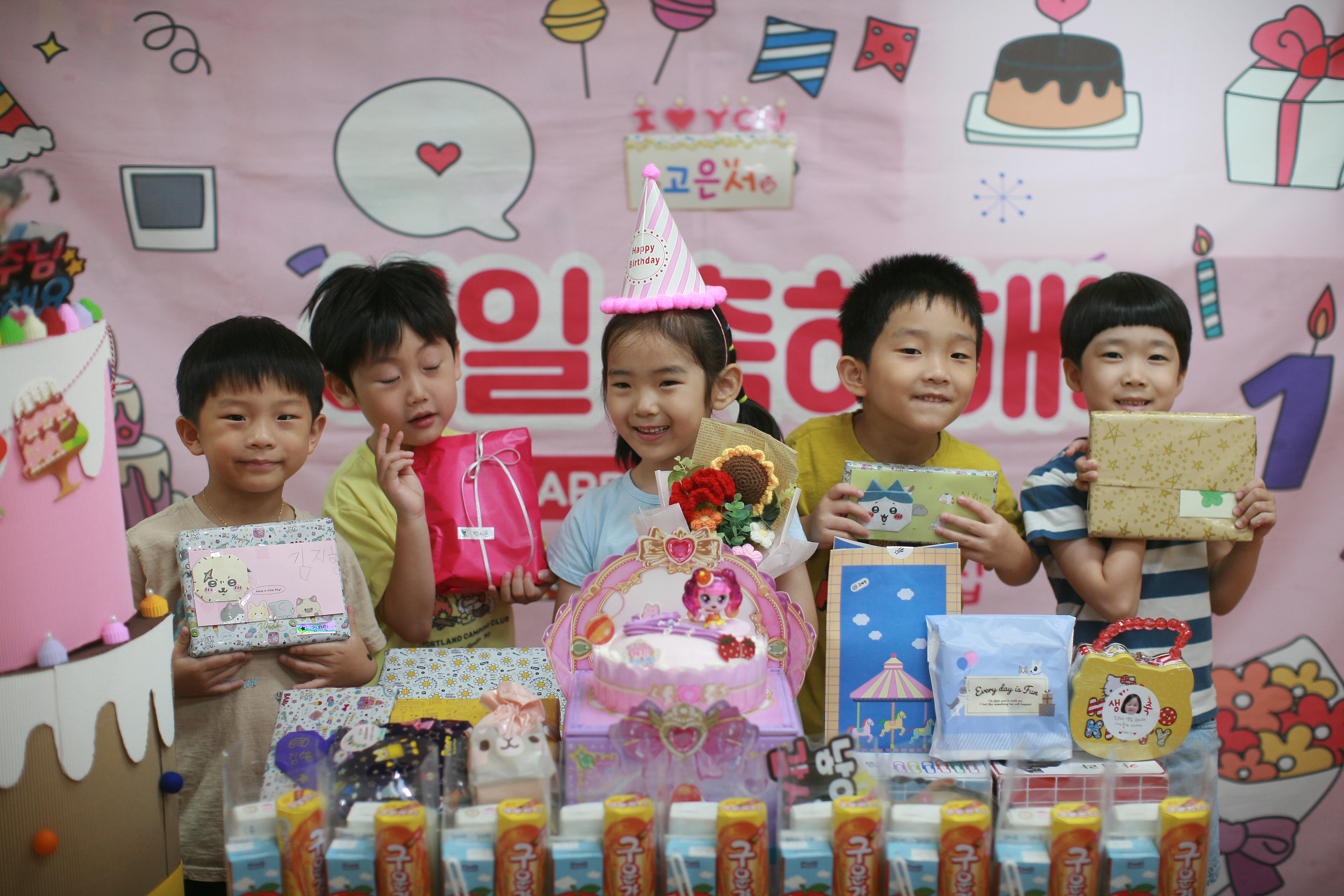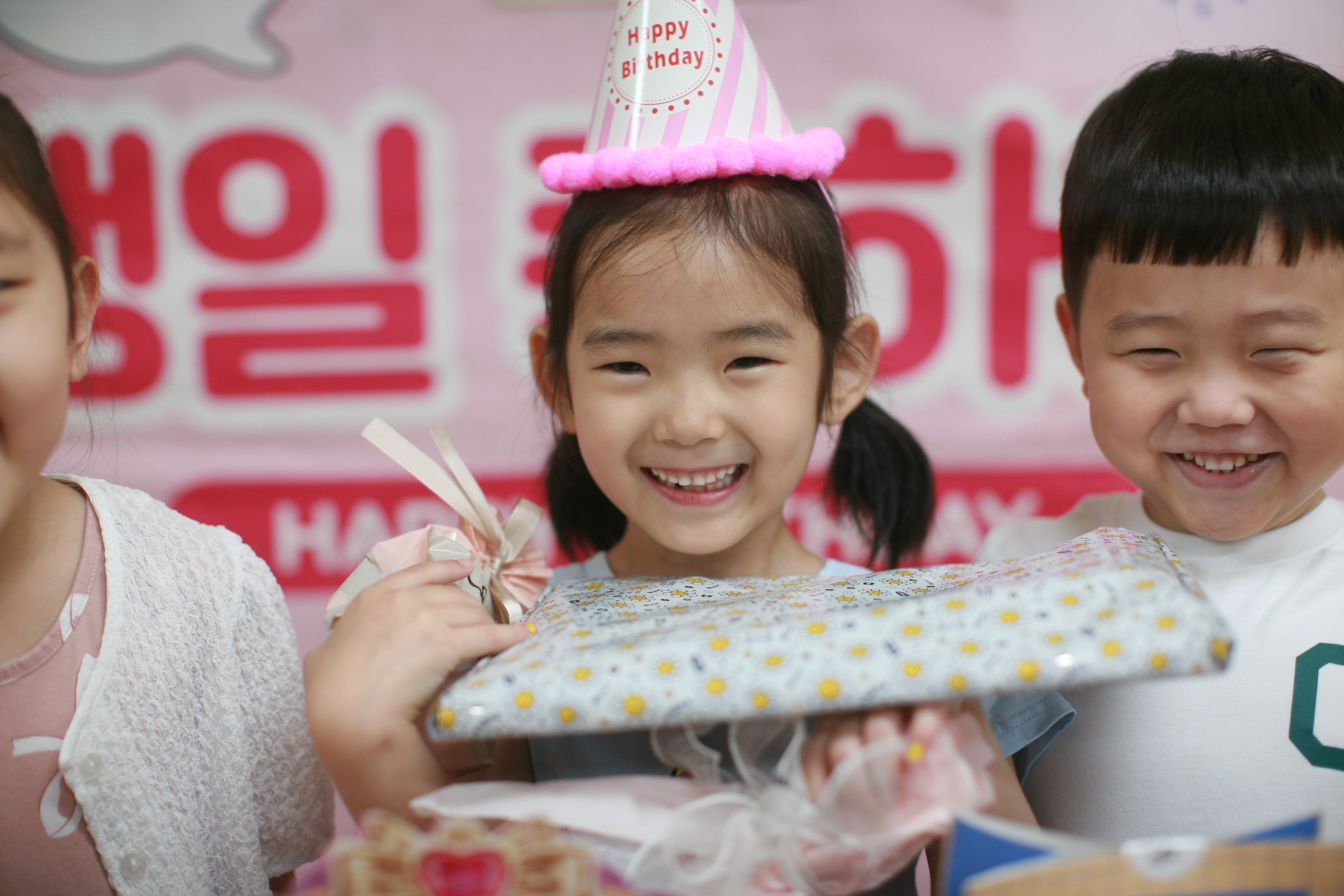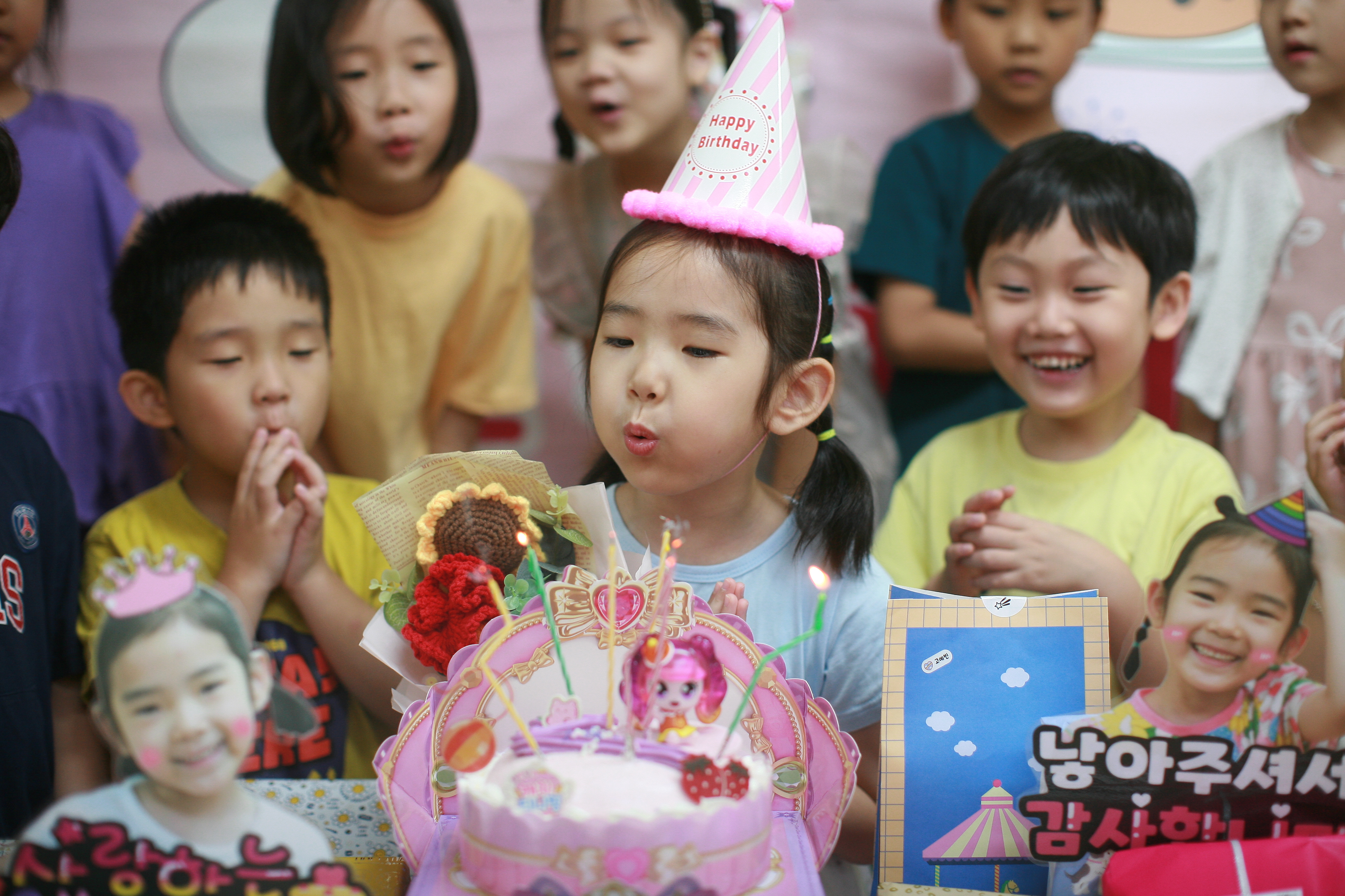 친구들은 모두 "은서야, 생일축하해"하며 환호성을 지릅니다.
