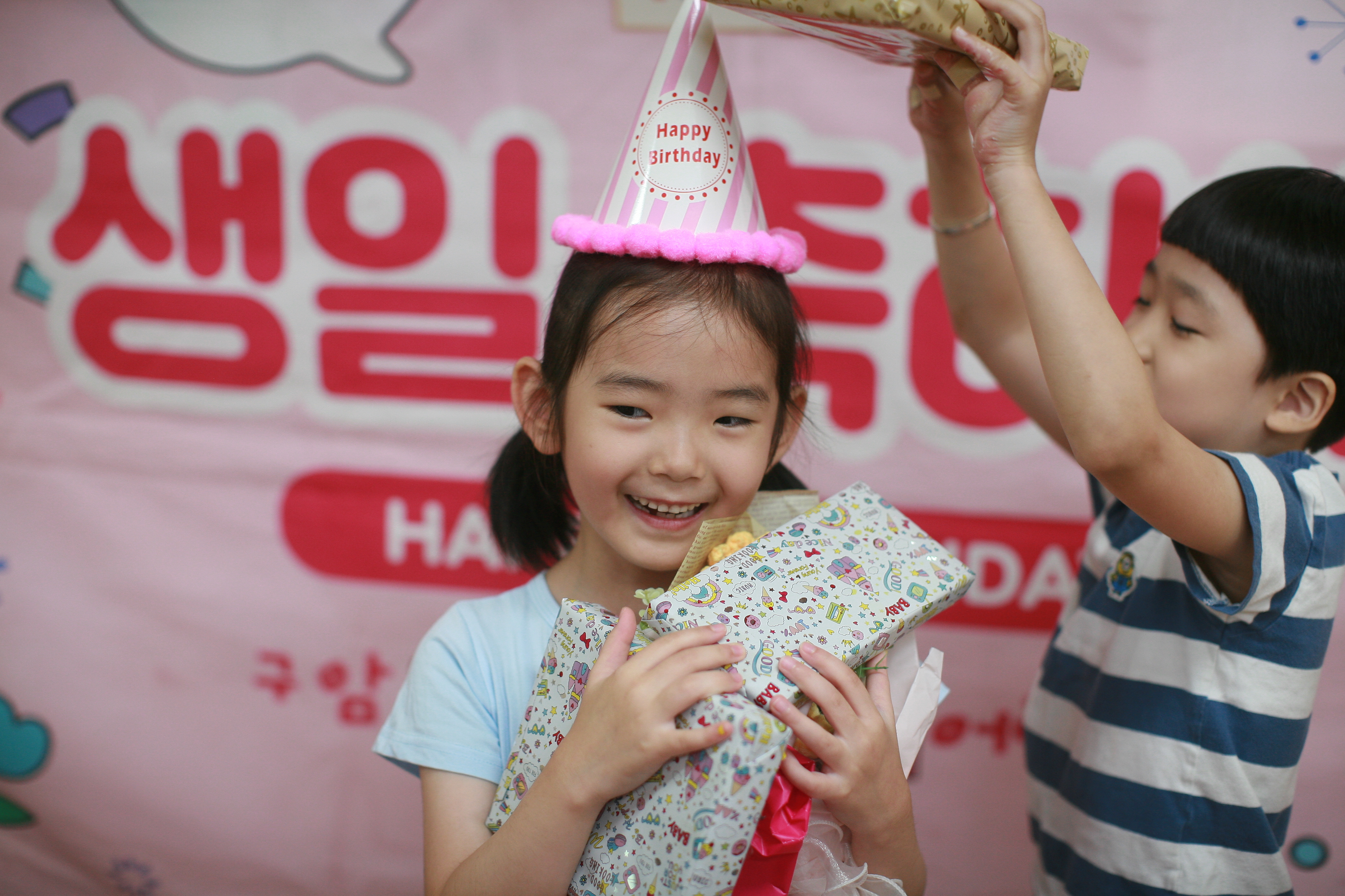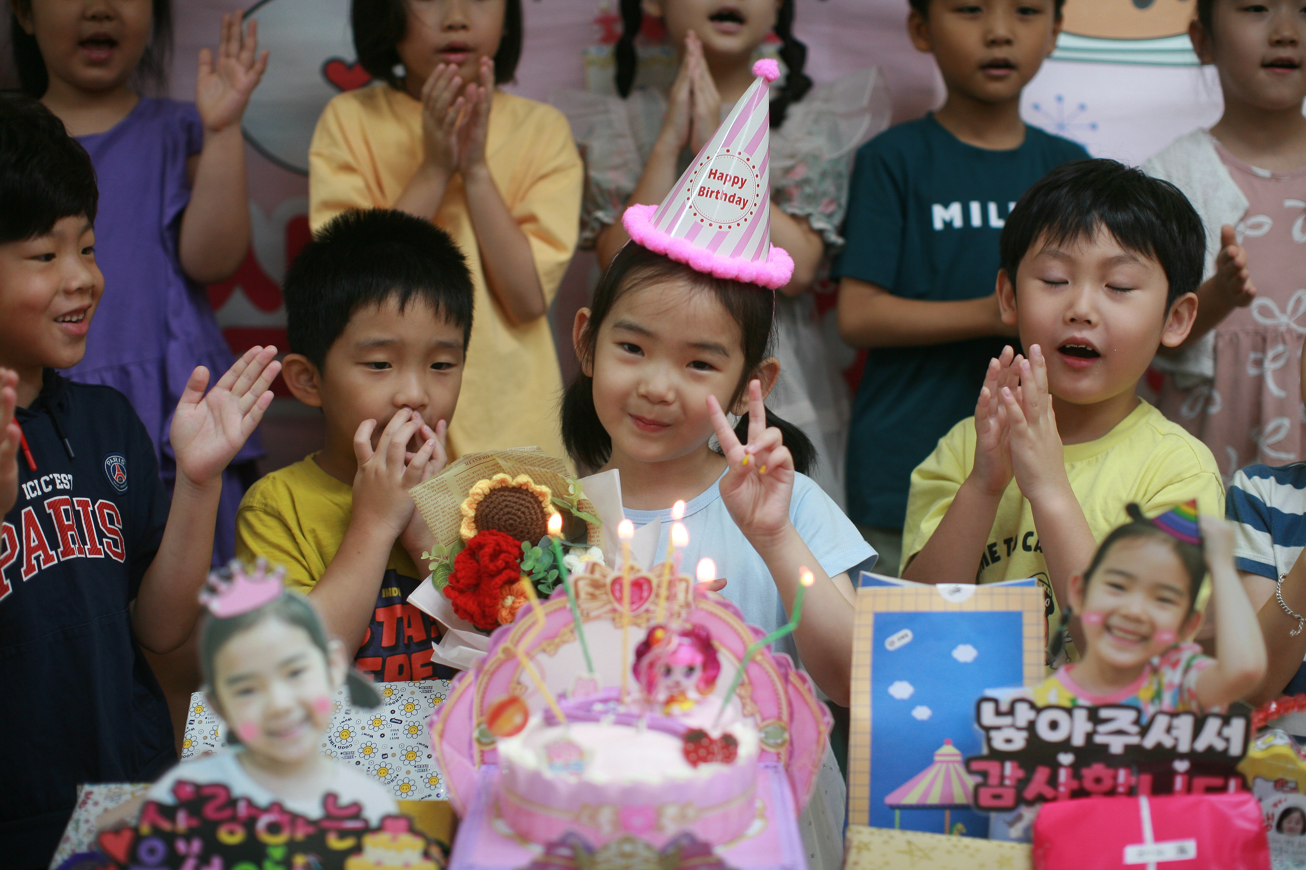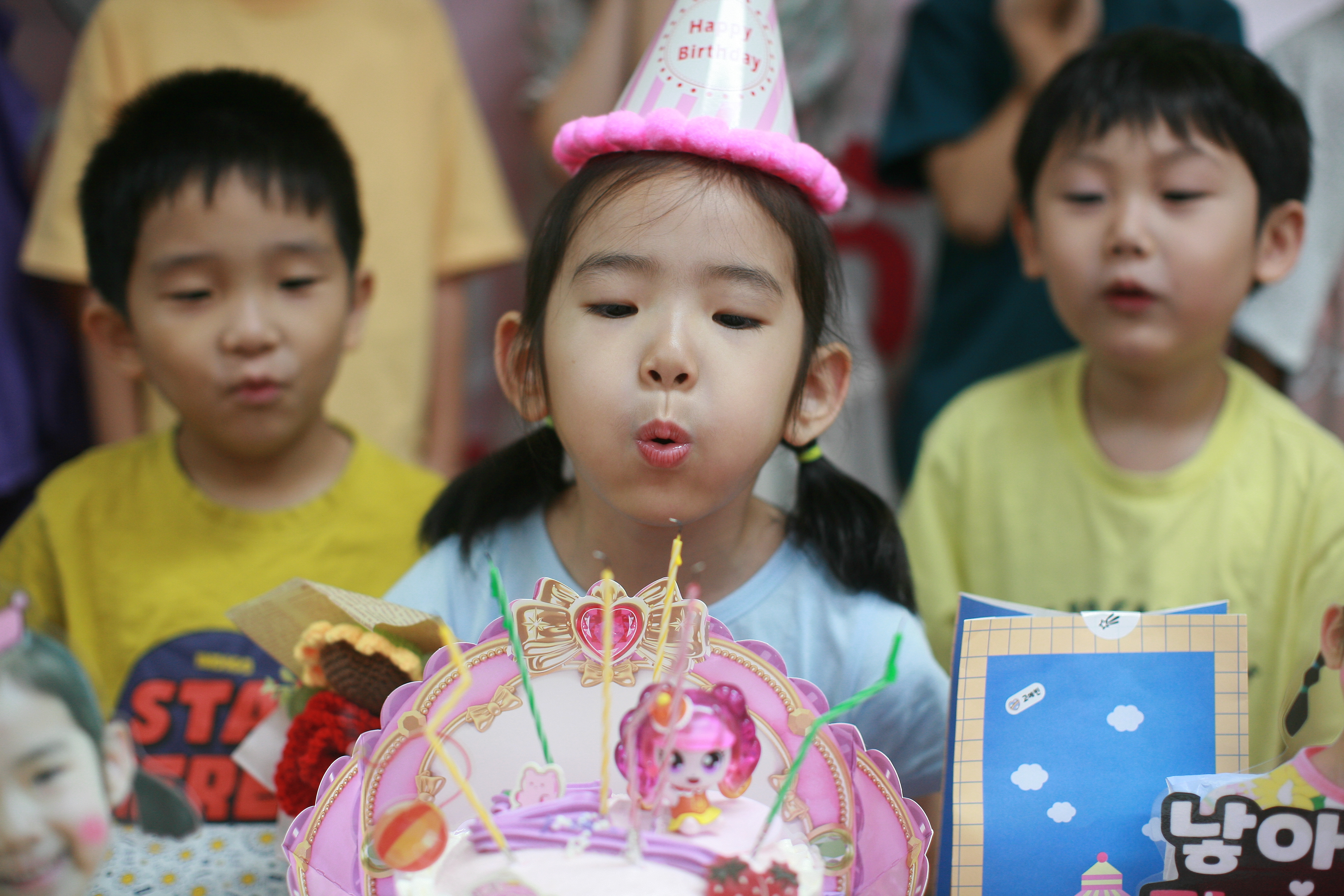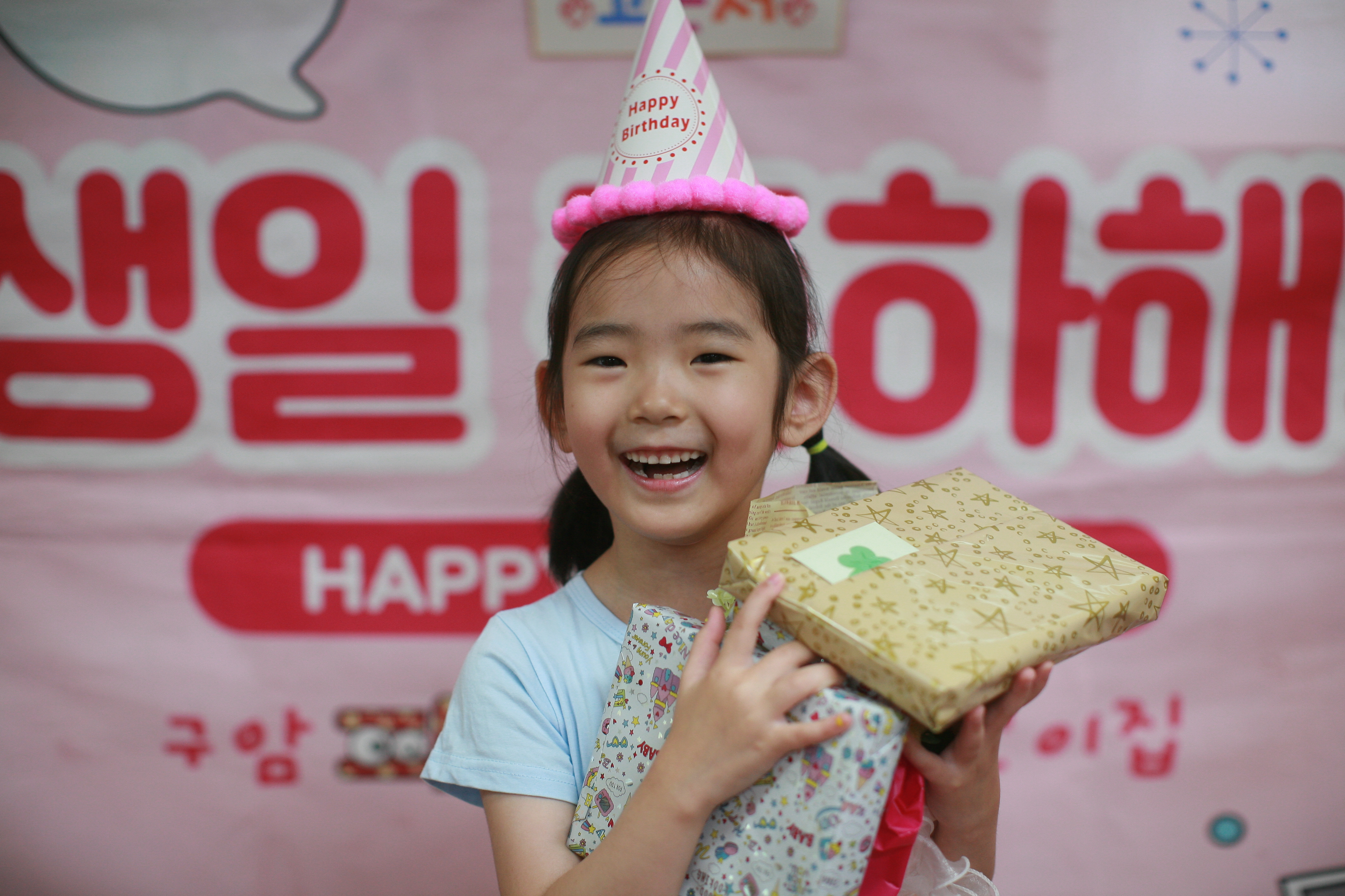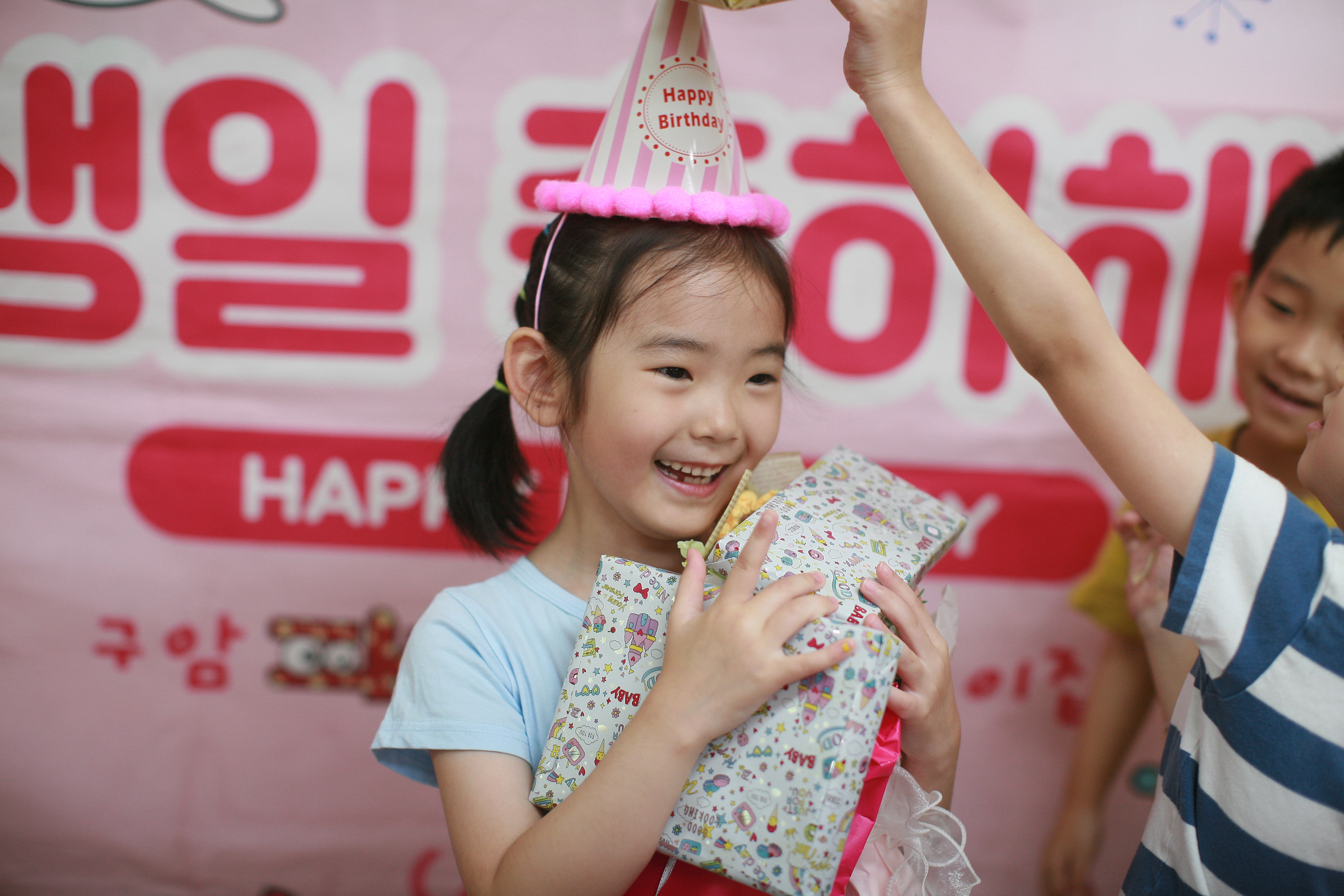 친구들은 모두 "은서야, 생일축하해"하며 환호성을 지릅니다.