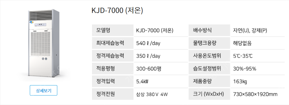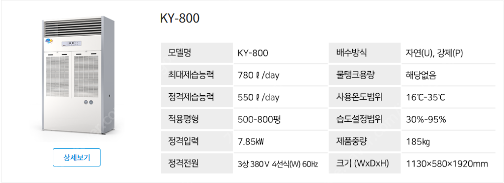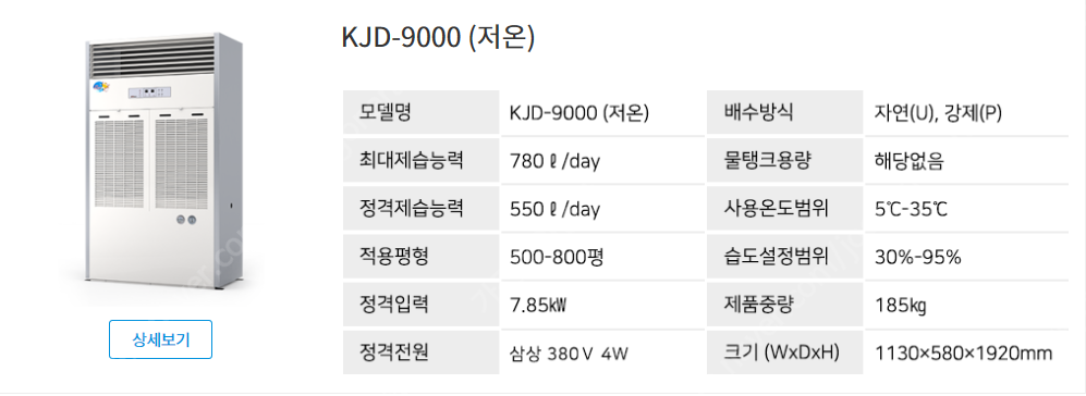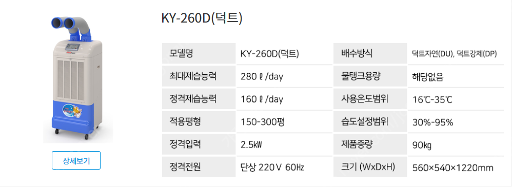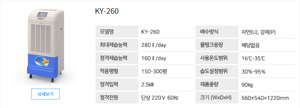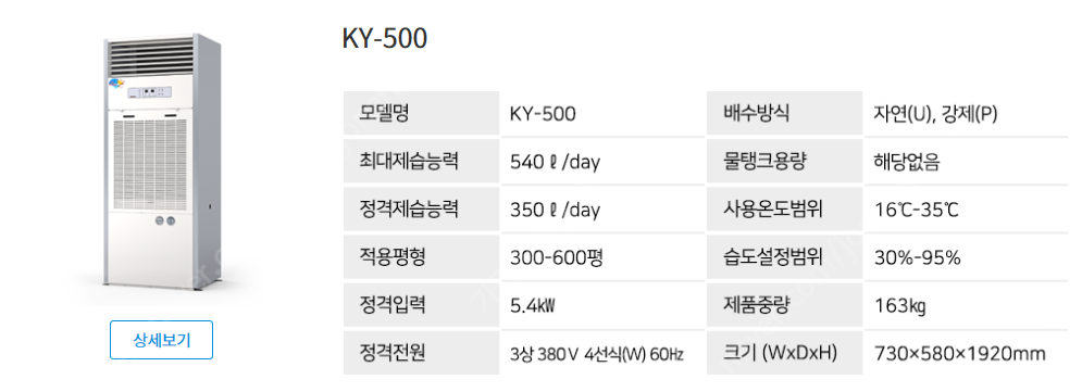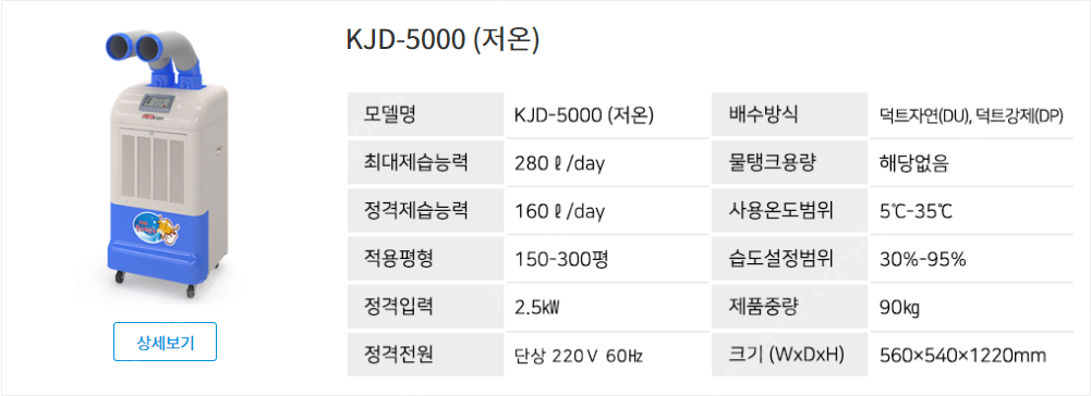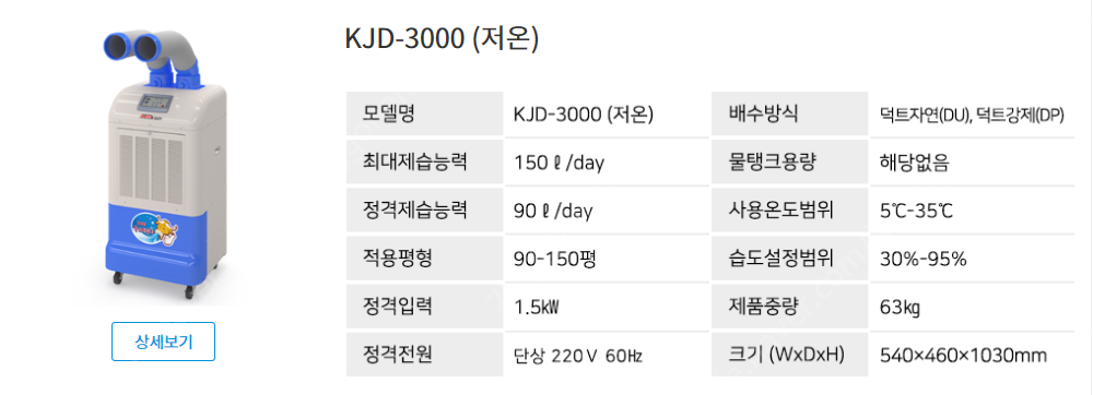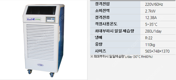 대형 창고와 결로 습기가 많은 장소에 적합한 대용량 제습기 입니다
