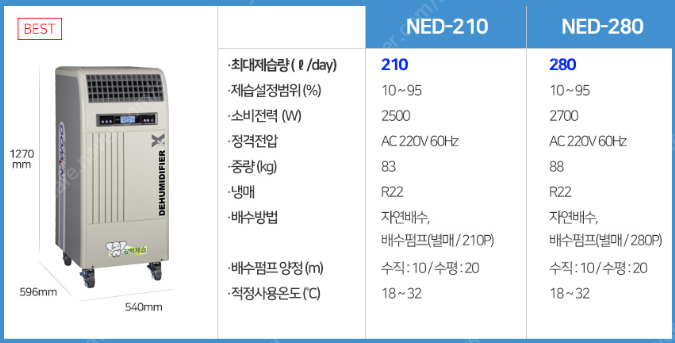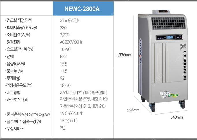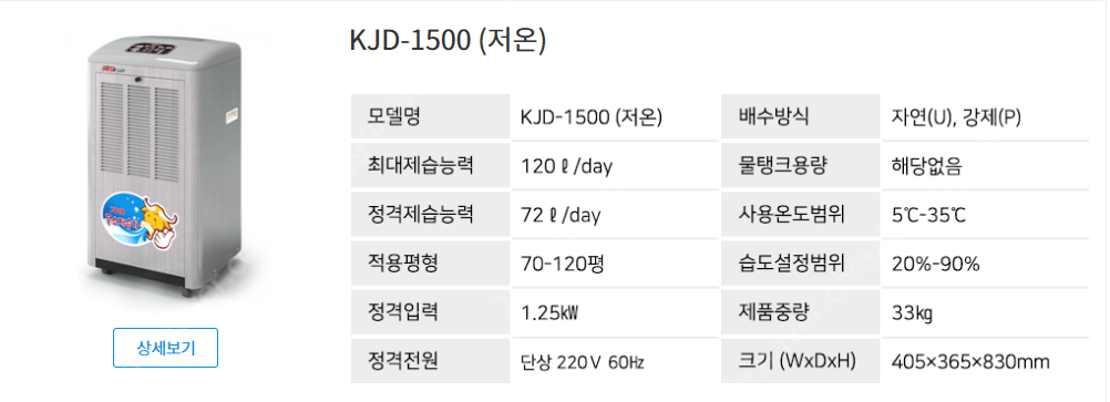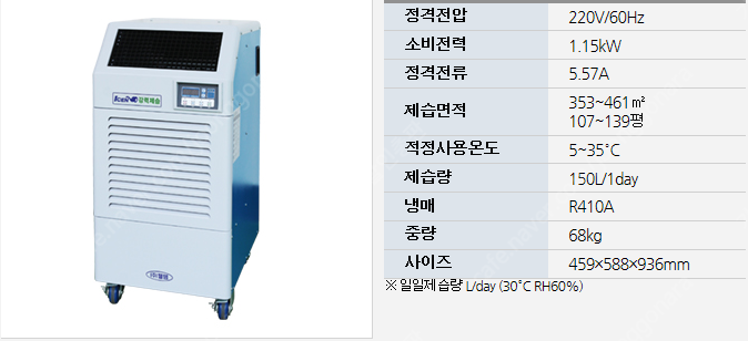 전기료 절전형과 강력 제습으로 100% 국산 정품 입니다