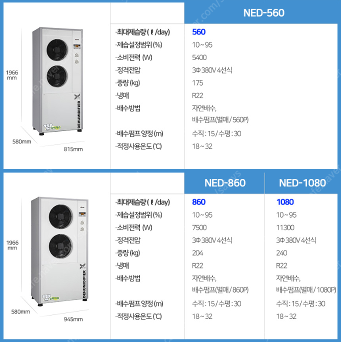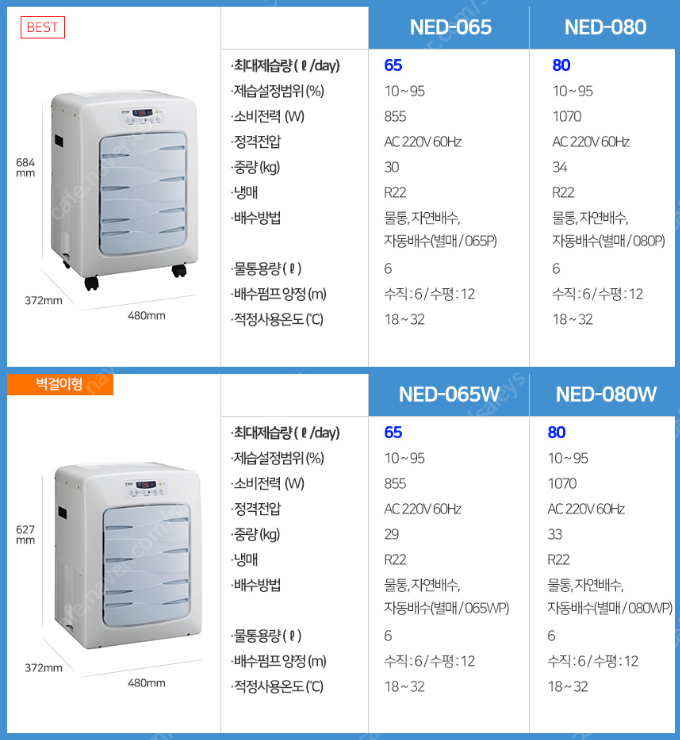NED-085DW 85리터 벽걸이 덕트 자연배수