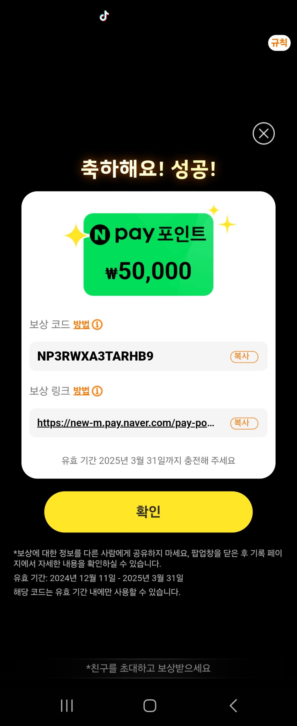 테무에서 네이버페이 5만원 뿌리는중~! 작성자넹넹넹|작성시간24.12.24|조회수149 목록 댓글 0 글자크기 작게가 글자크기 크게가 테무에서 네이버페이 뿌리는중 다들 참여하셔요룰렛만 돌려도 네이버페이 5000~50000원 이벤트기간 얼마 안남았어요 https://temu.com/s/KIvFuzvMtRWtq8매우 극소량만 부족해요!보상이 너무 가까워요. 저 좀 도와주세요!temu.com 다음검색 현재 게시글 추가 기능 열기 북마크 공유하기 신고 센터로 신고 댓글 댓글 0 댓글쓰기 답글쓰기 댓글 리스트