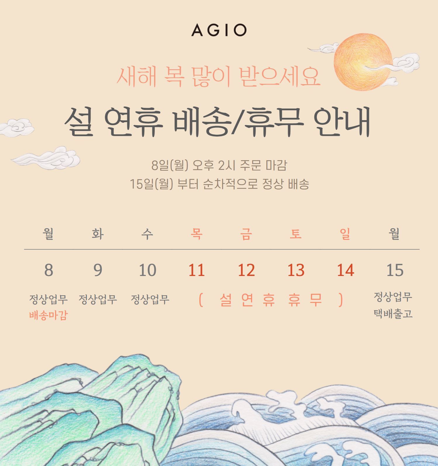 <2021 설연휴 배송/휴무안내> 작성자아지오|작성시간21.02.08|조회수126 목록 댓글 0 글자크기 작게가 글자크기 크게가 <아지오 설연휴 배송/휴무안내> https://agio.krTel. 031)732-9245 다음검색 현재 게시글 추가 기능 열기 북마크 공유하기 신고 센터로 신고 댓글 댓글 0 댓글쓰기 답글쓰기 댓글 리스트