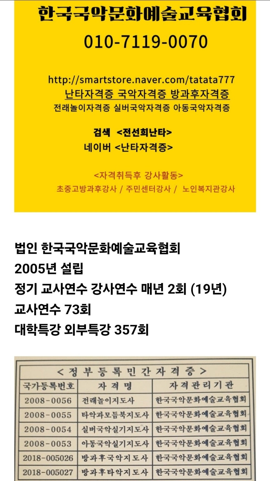 자격발급기관 한국국악문화예술교육협회 010-7119-0070