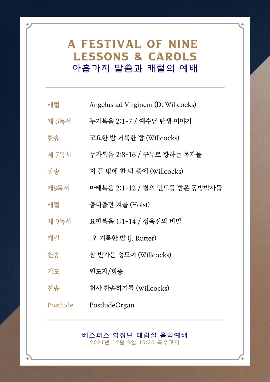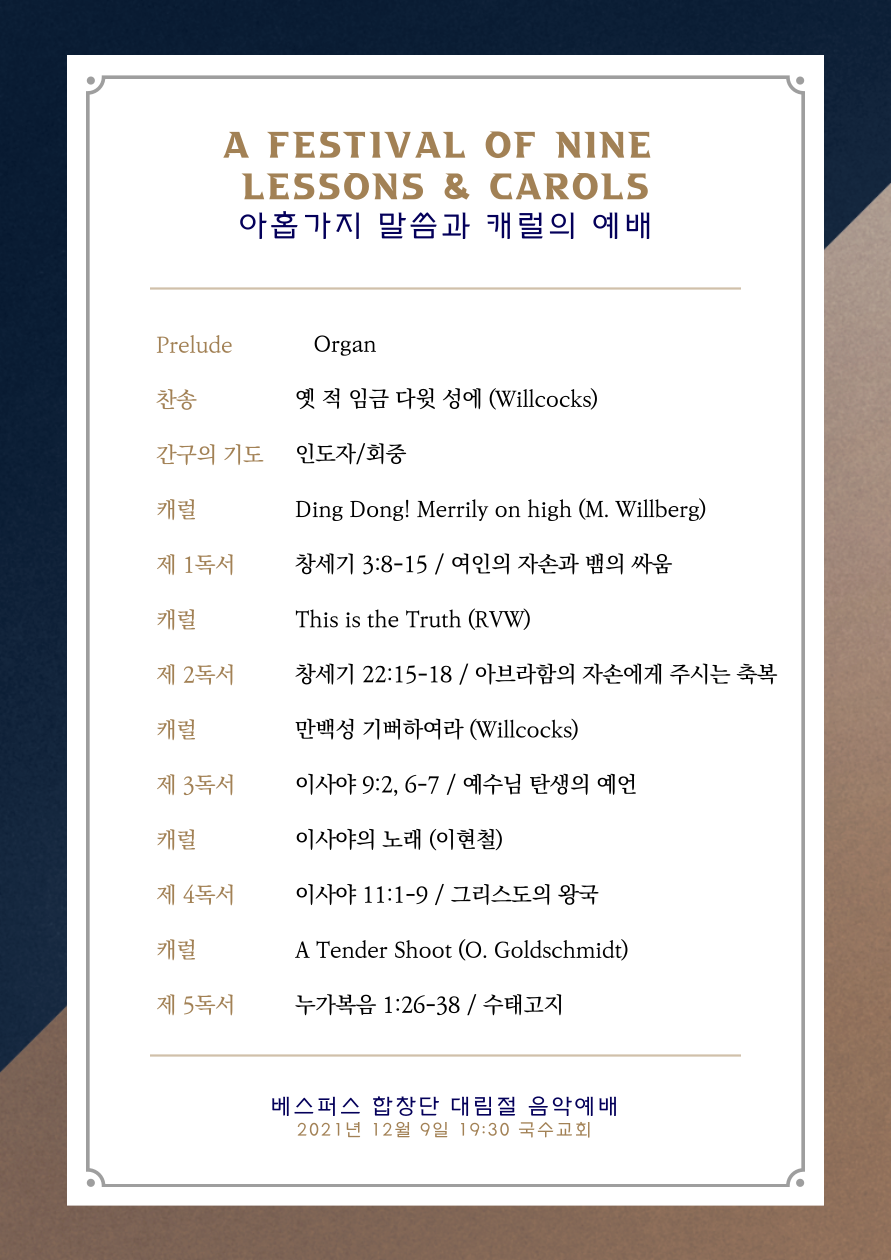 "아홉가지 말씀과 캐롤로 드리는 콘서트 예배"