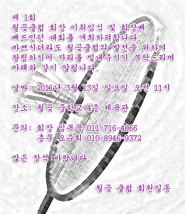은행배드민턴클럽 카페에 방문 하신것을 환영합니다.