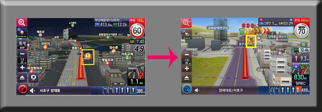 그 도로 상황에 맞게 정확하게 표현해 주고 있다