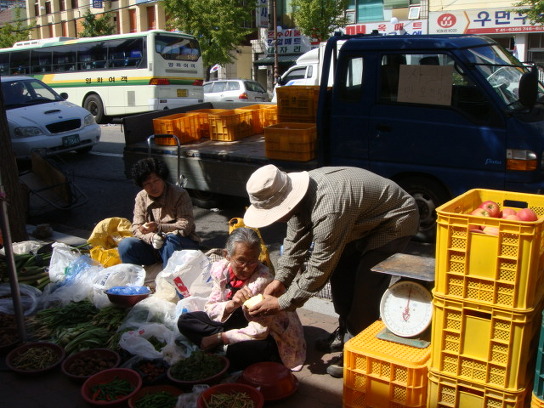 마침 장날이라 도로변은 오가는 사람들로, 행상하는 할머니들로 붐볐습니다.