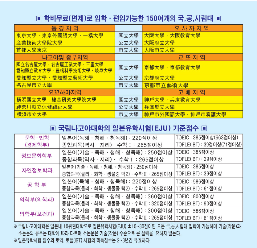 지불하면 학비무료로 입학이 가능합니다. 국립대,공립대,시립대 입학을 위해서는 대학에서