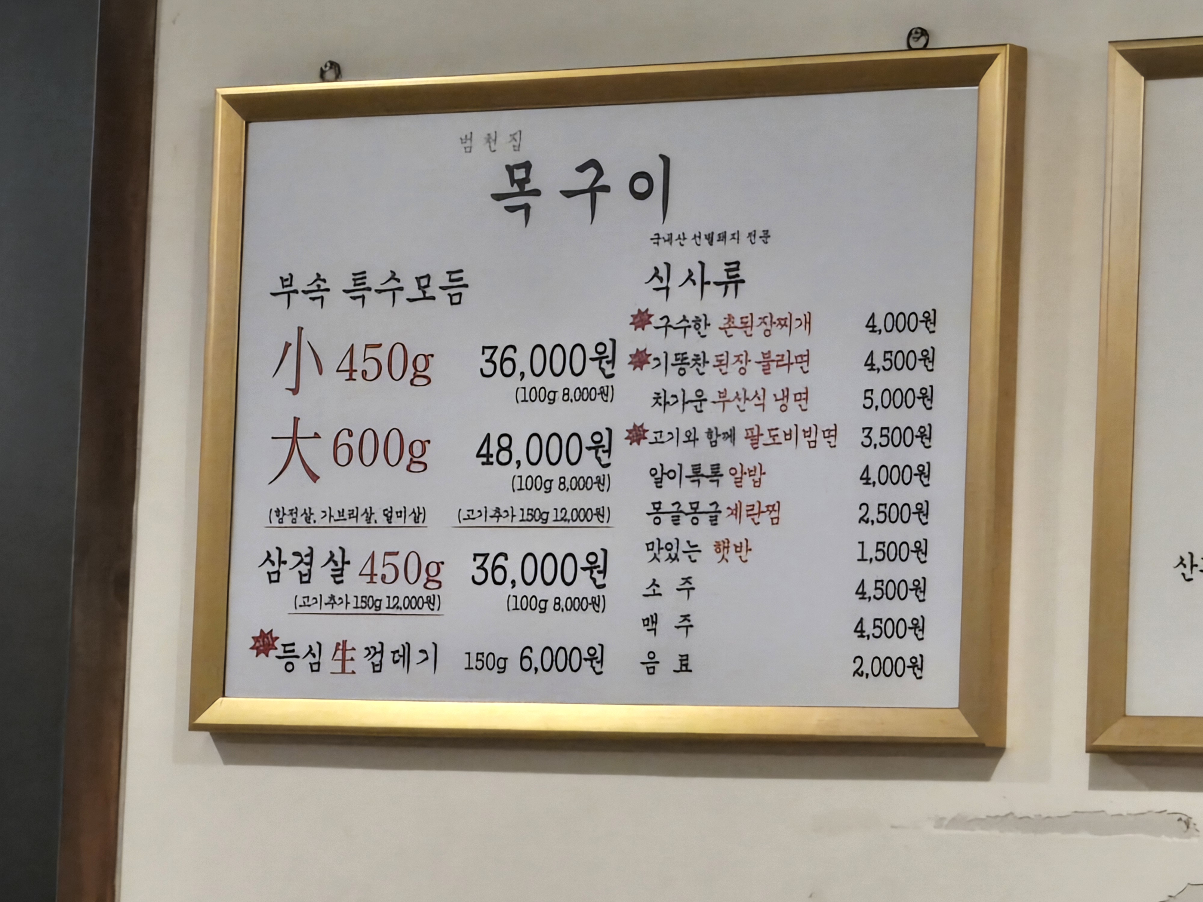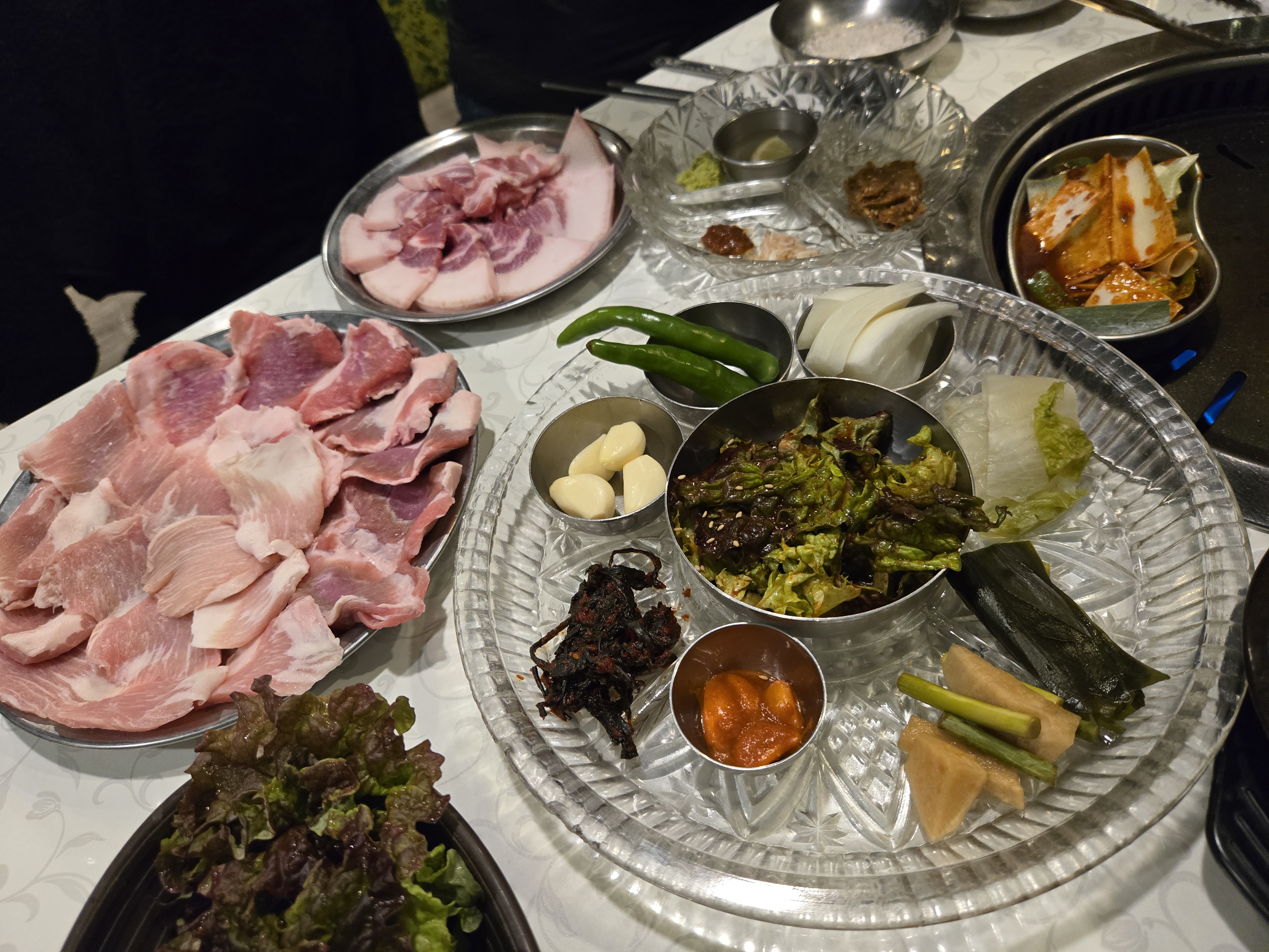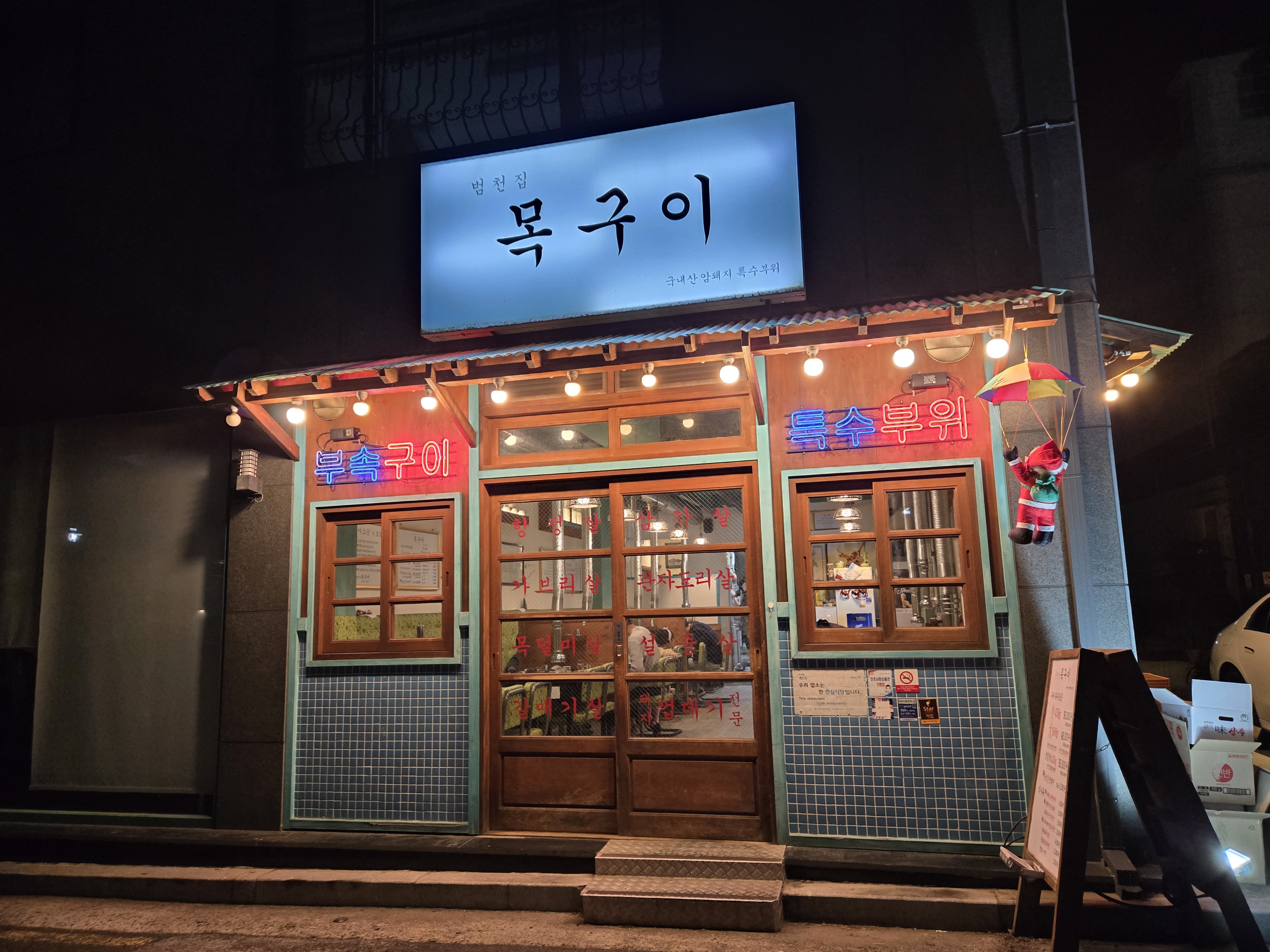 돼지고기 구워 먹으러 우리 가족이 가는 집 앞 고기 구이