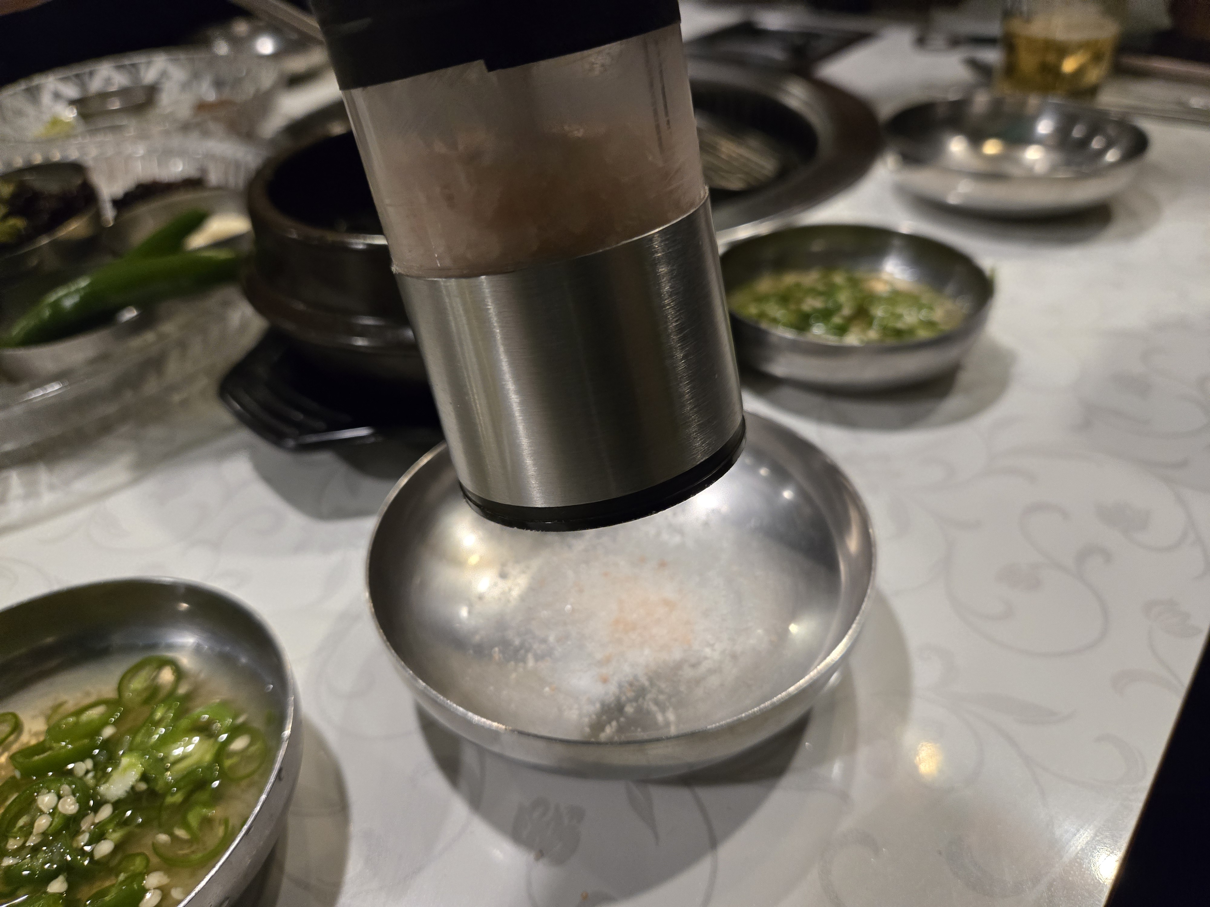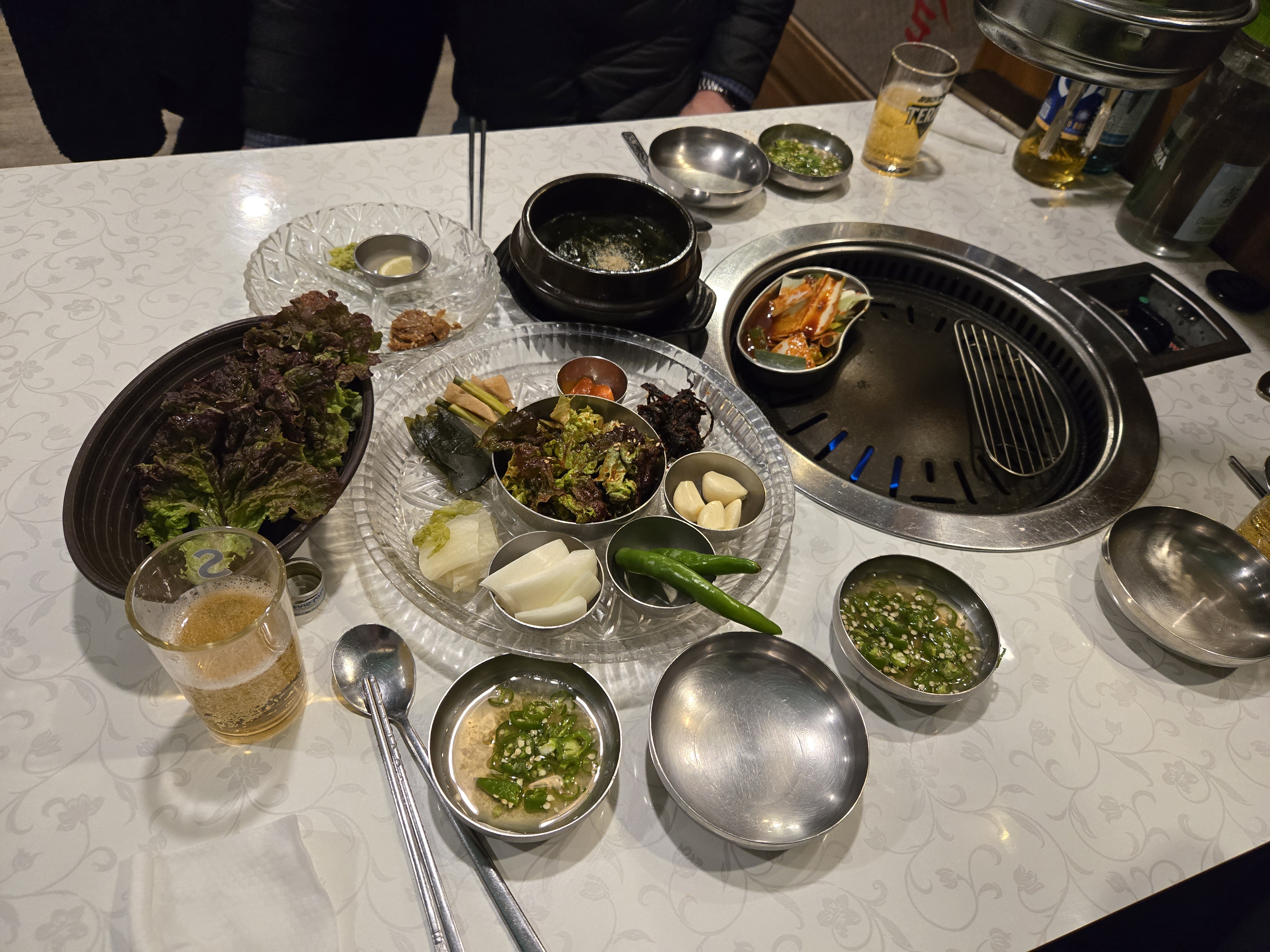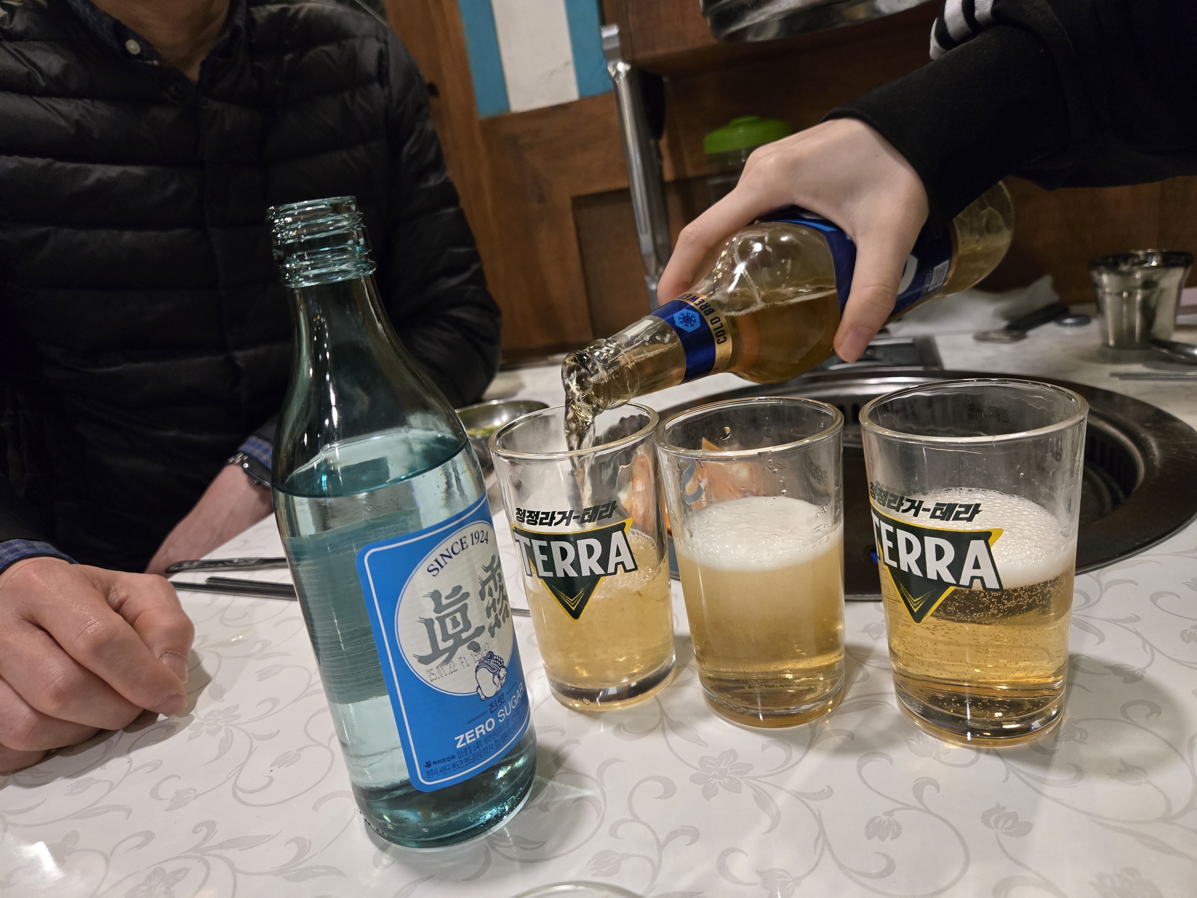 고기 주문을 하고 식전 쏘맥 일 잔씩.